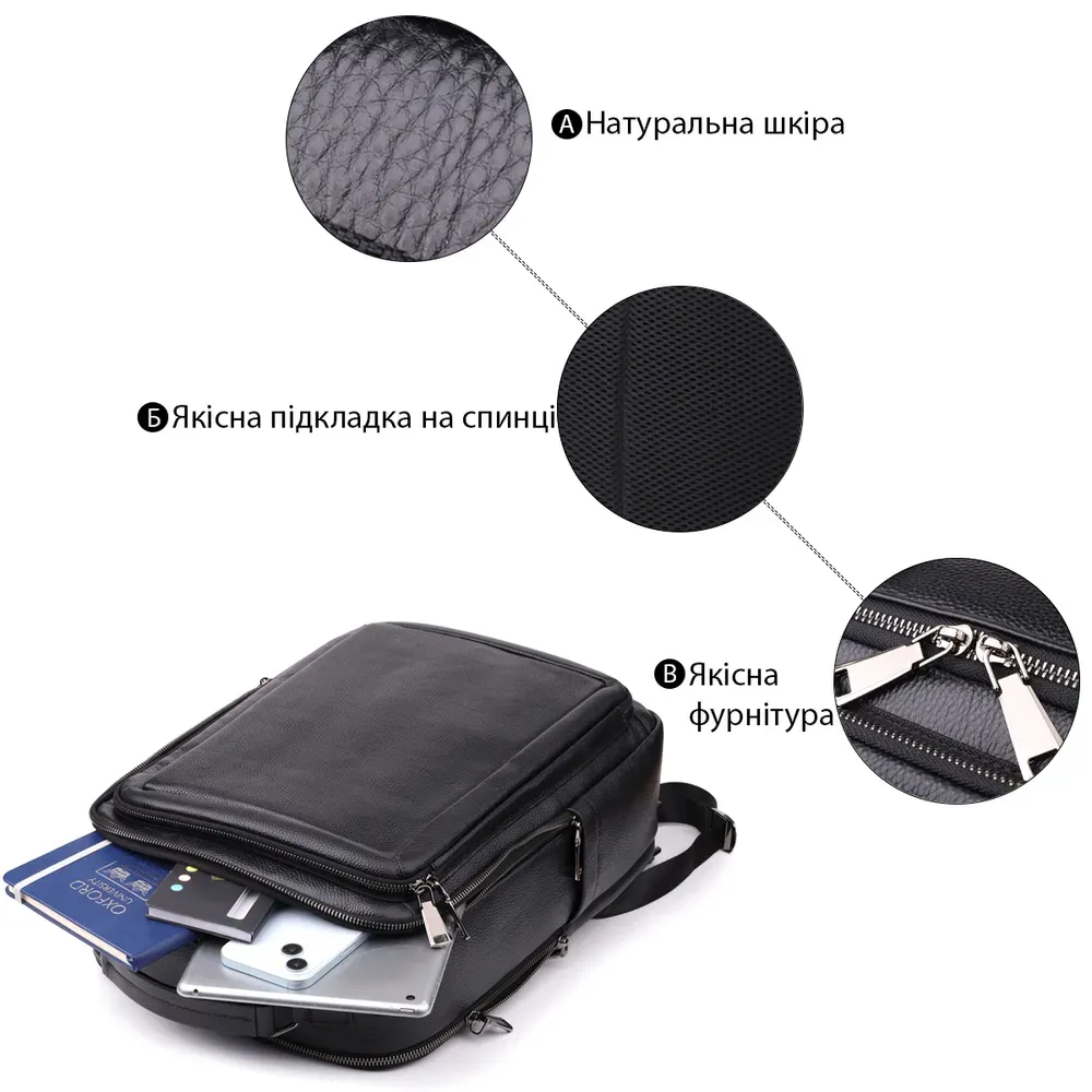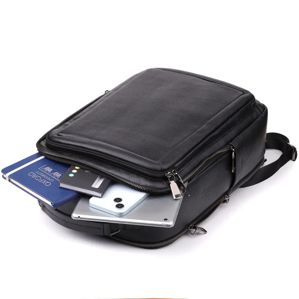 Багатофункціональний рюкзак для чоловіків з натуральної шкіри Vintage 23044 Чорний