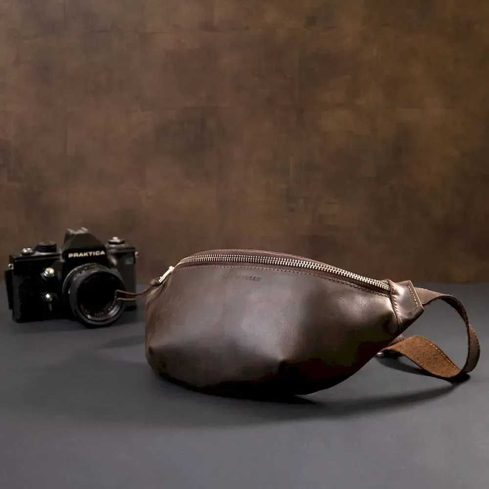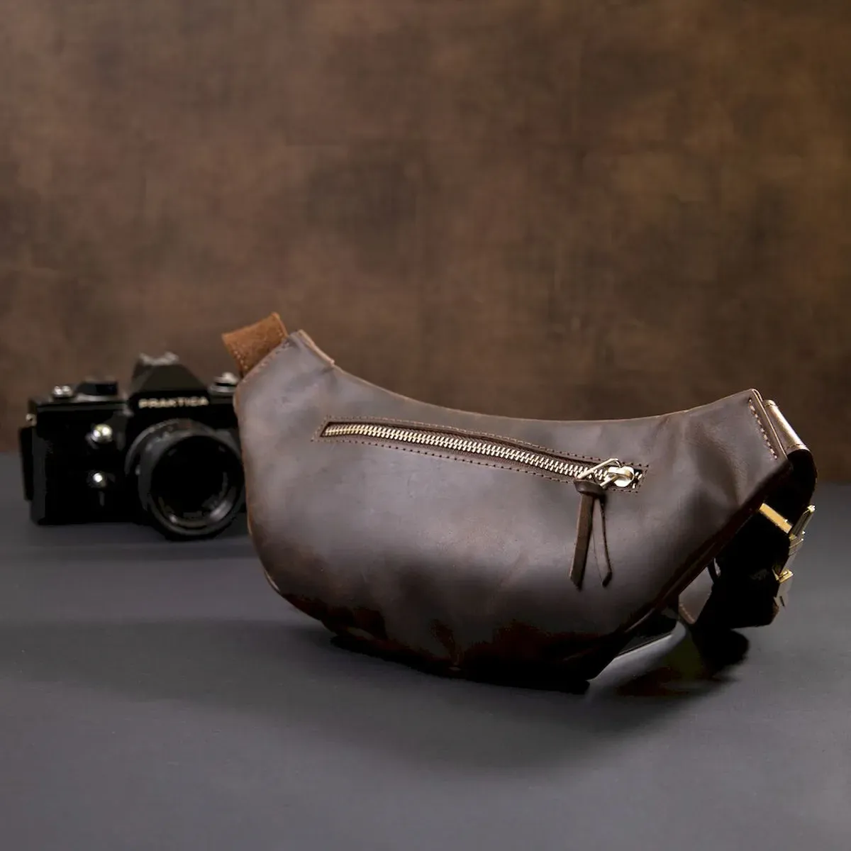 Бананка у вінтажній шкірі GRANDE PELLE 11154 Коричнева