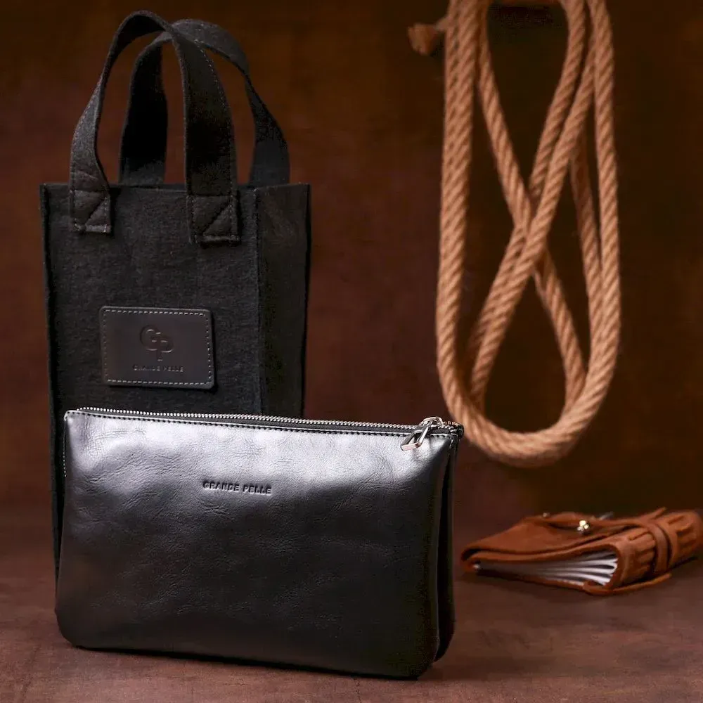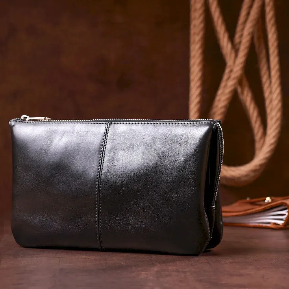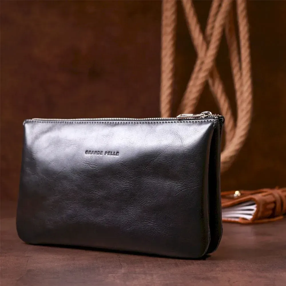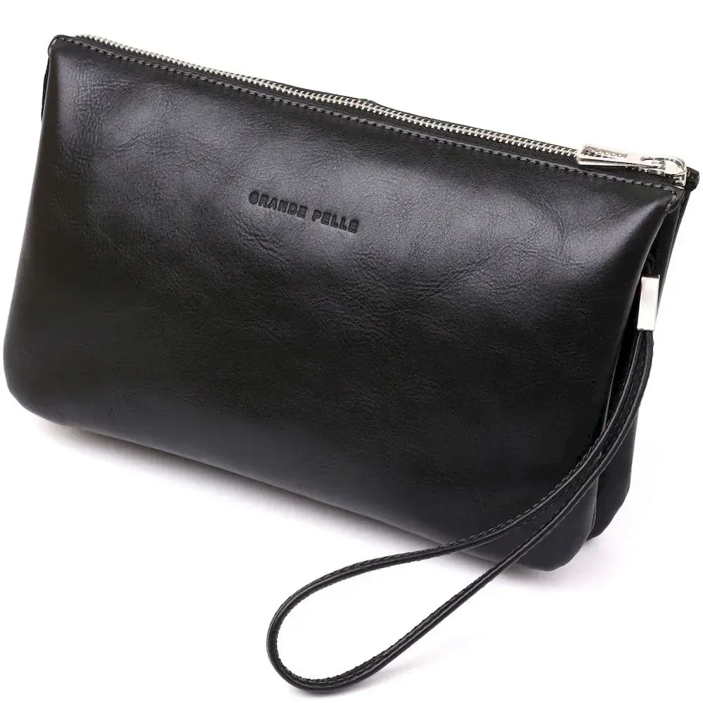 Барсетка чоловіча GRANDE PELLE 11146 в гладкій шкірі Чорна