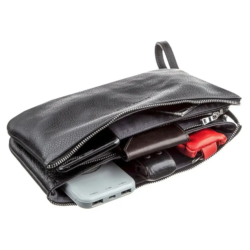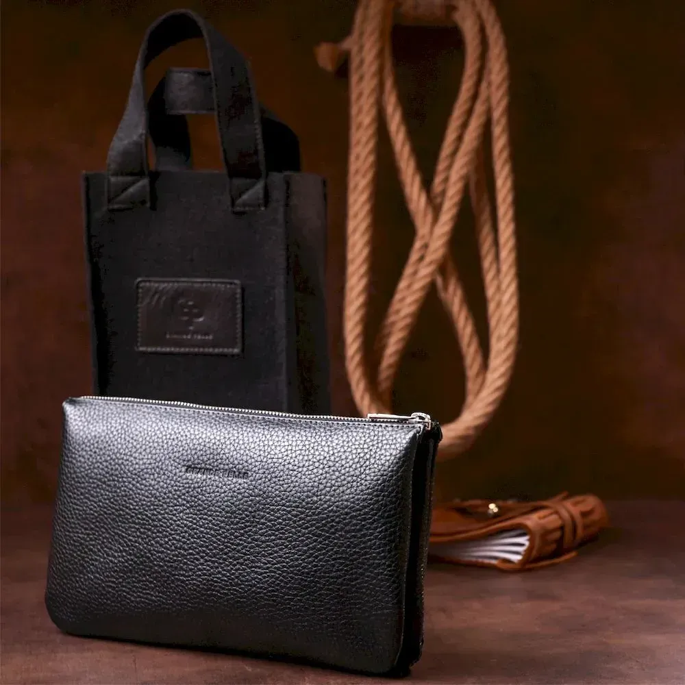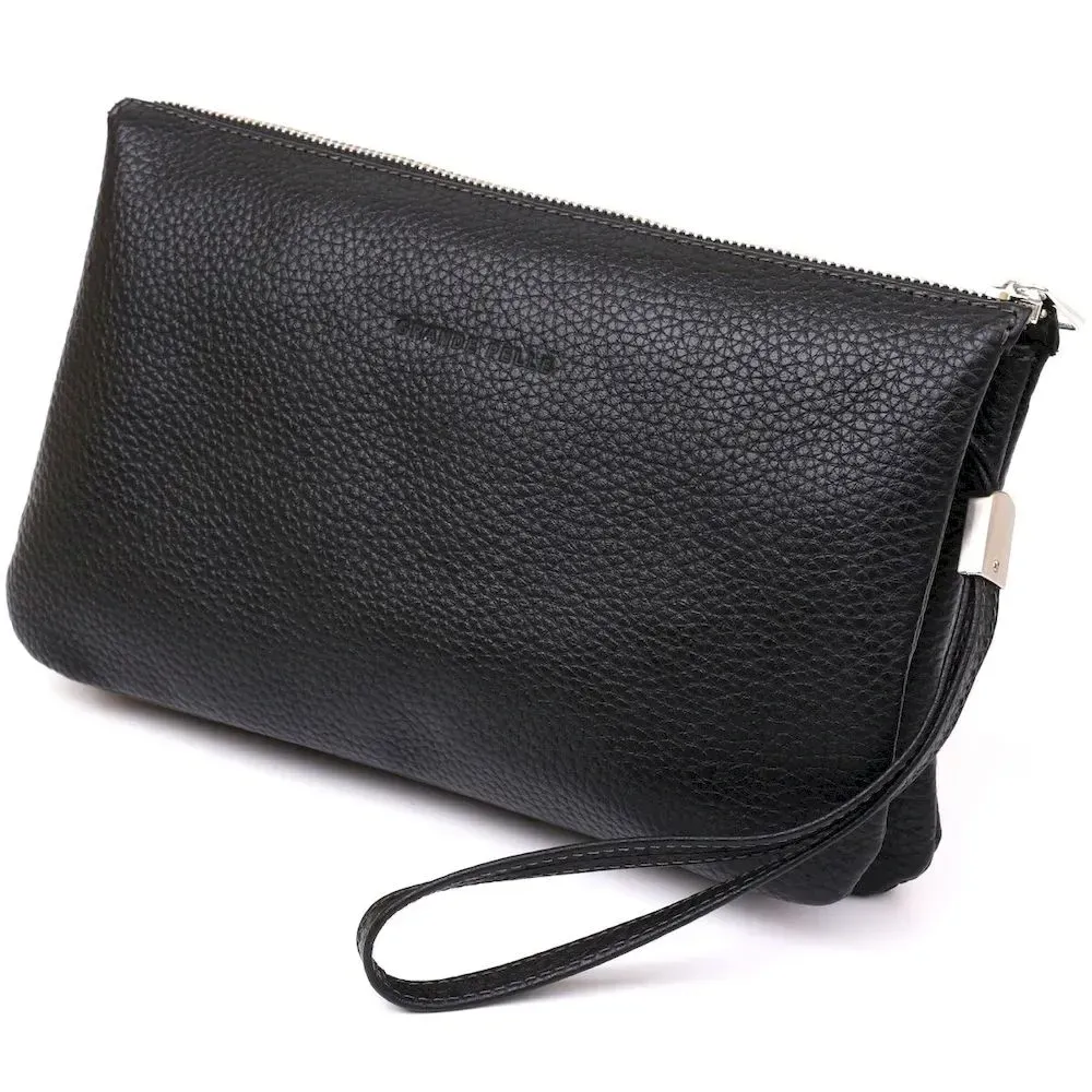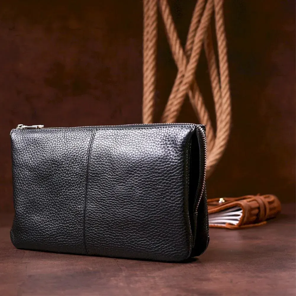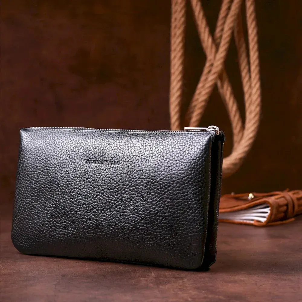 Барсетка чоловіча GRANDE PELLE 11147 шкіряна Чорна флотар
