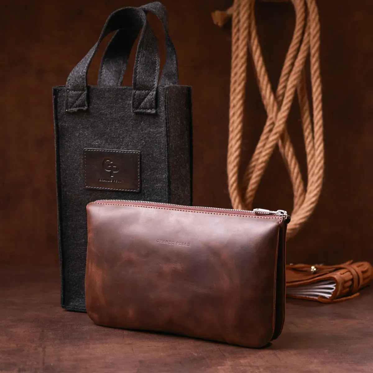 Барсетка чоловіча вінтажна GRANDE PELLE 11145 шкіряна Коричнева