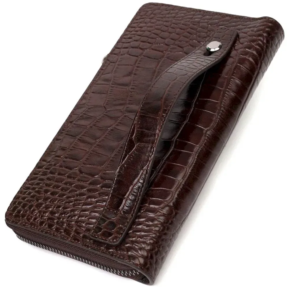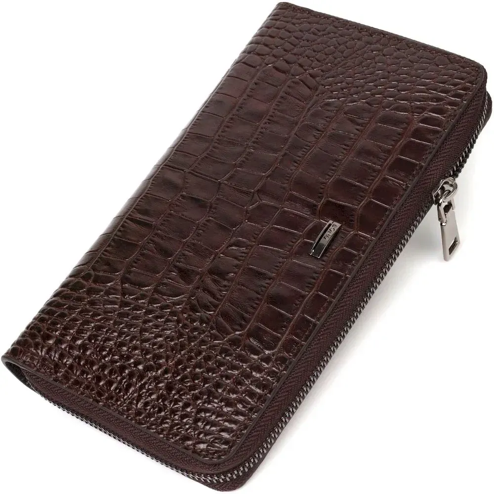 Великий чоловічий клатч з одним відділенням з натуральної шкіри з тисненням під крокодила BOND 22028
