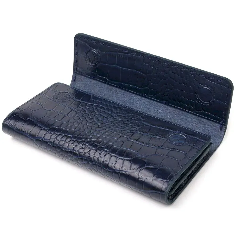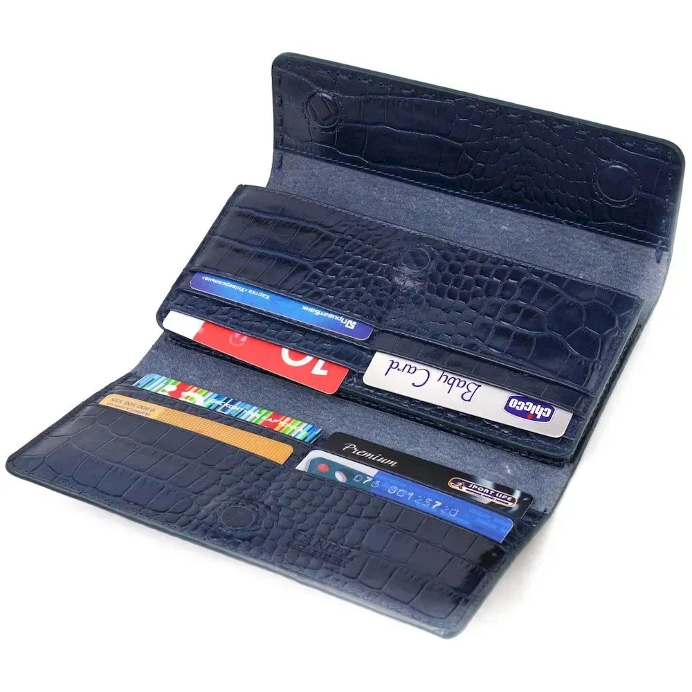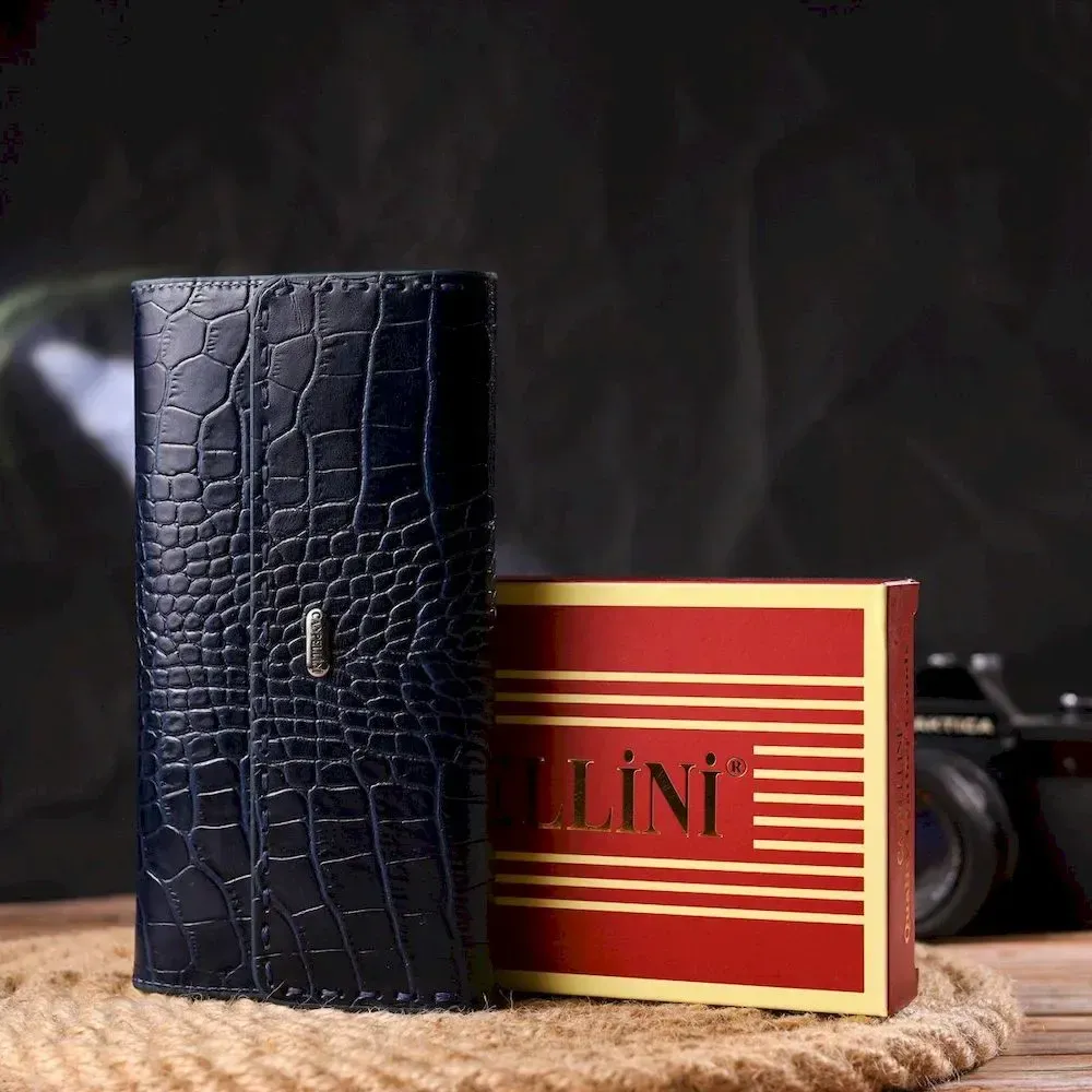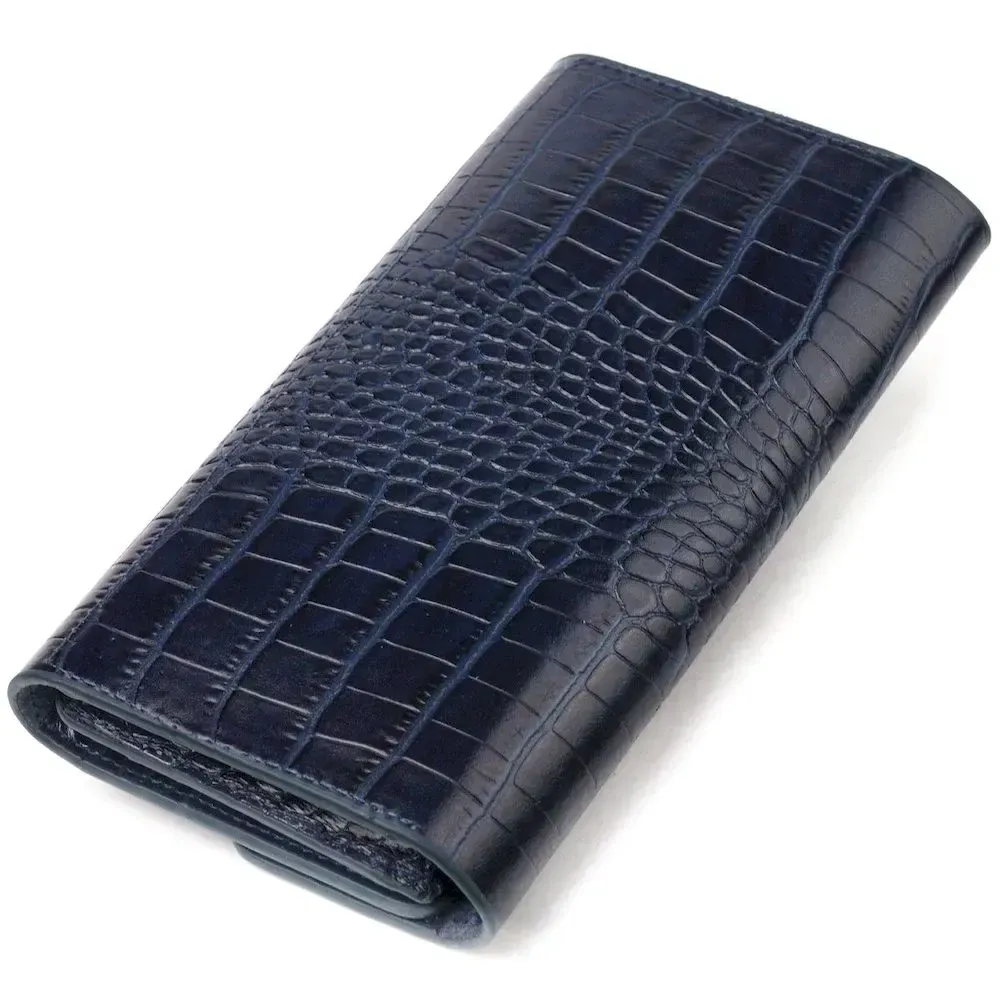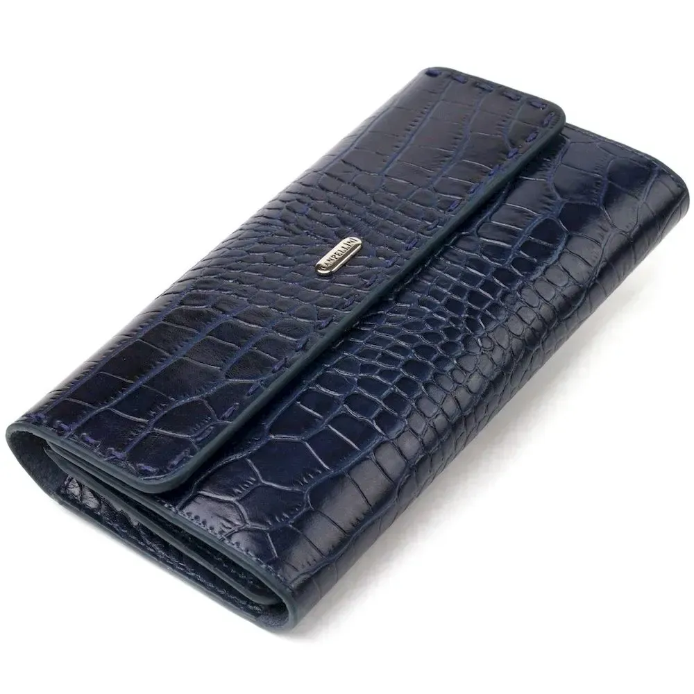 Великий жіночий гаманець із натуральної шкіри з тисненням під крокодила CANPELLINI 21661 Синій