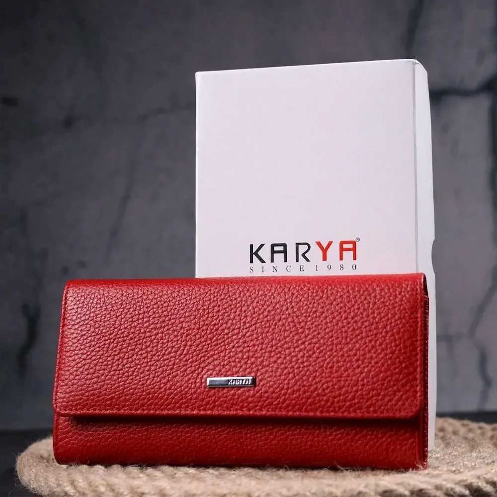 Великий жіночий шкіряний гаманець у дві додавання KARYA 21337 Червоний