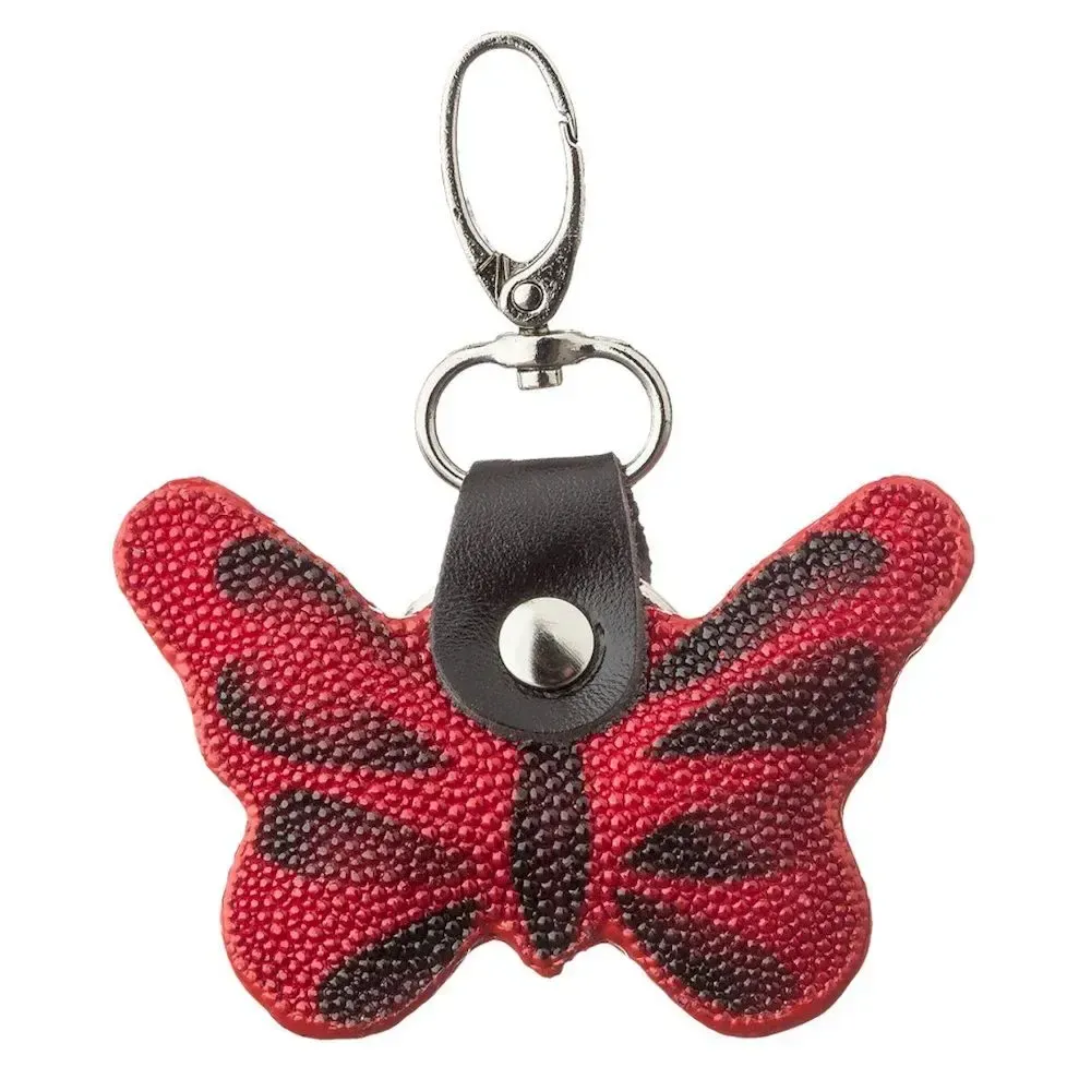 Брелок з натуральної шкіри морського схилу, дуже стійкою до зношування, проколів, порізів, до розривів і навіть до вогню. Модель у вигляді метелика. Виріб підходить як для ключів, так і як аксесуар для сумочки або рюкзака. Має карабін.
