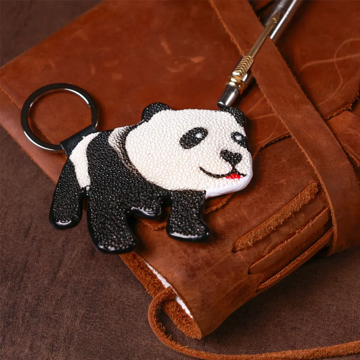 Брілок з натуральної шкіри морського схилу, дуже стійкий до зношування, проколів, порізів, до розривів і навіть до вогню. Виріб підходить як для ключів, так і як аксесуар для сумочки або рюкзака.