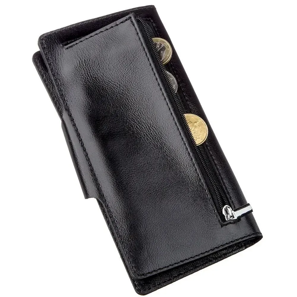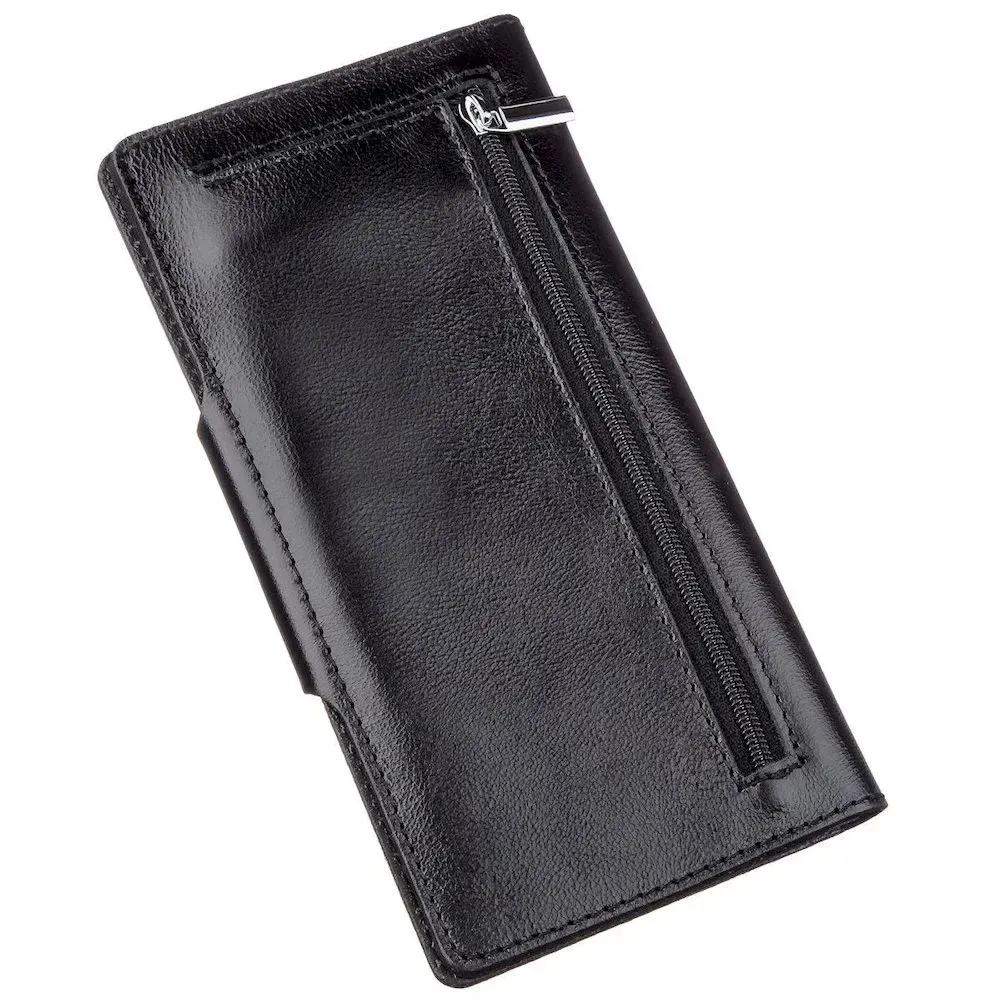 Чоловічий шкіряний гаманець виконаний у класичний чорний колір. М'яка та приємна шкіра з природним властивим їй запахом. Аксесуар має високу зносостійкість і не вибагливий у догляді. Ні для кого не секрет, що вироби з натуральної шкіри носяться набагато довше, ніж із замінника чи текстилю. Дуже солідний дизайн із тисненим логотипом бренду на лицьовій стороні. Закривається модель на хлястик із кнопками (ближню чи далеку). Особливістю моделі є те, що ви самостійно регулюєте її наповненість, закриваючи його однією з кнопок. Модель доступна в різних кольорах та типах шкіри і стане чудовим подарунком з будь-якого приводу.