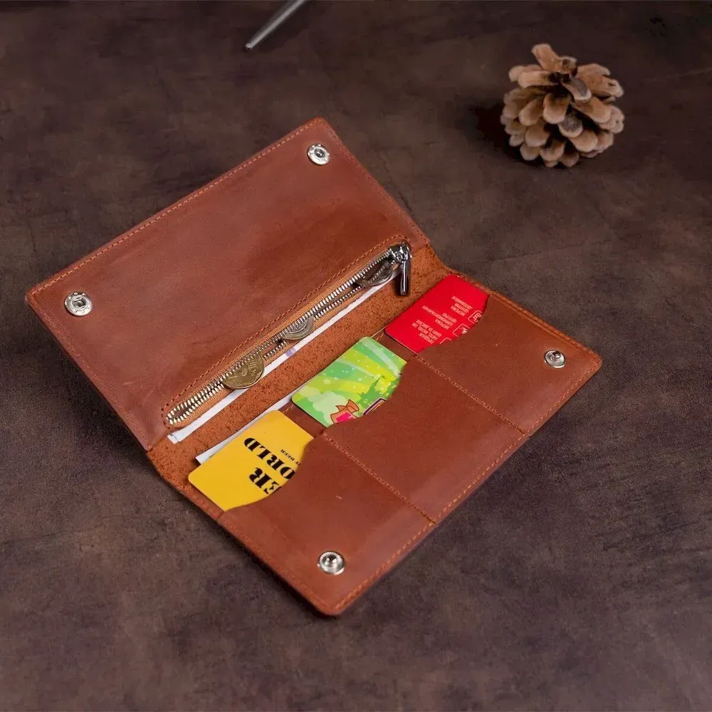 Чоловічий гаманець матовий з натуральної шкіри. Зручно лежить у руці і має простий та функціональний дизайн. Кишеньку на блискавці за бажання ви можете використовувати для дрібниці. З таким аксесуаром ваші кошти завжди будуть у безпеці. Купюри в гаманець розміщуються у розгорнутому вигляді. Закривається гаманець на дві кнопки всередині аксесуара. Виріб легко поміститься в сумку і однозначно порадує свого власника.