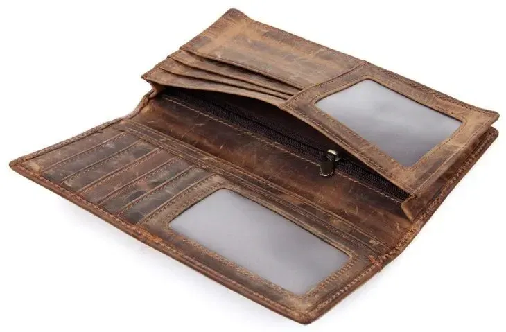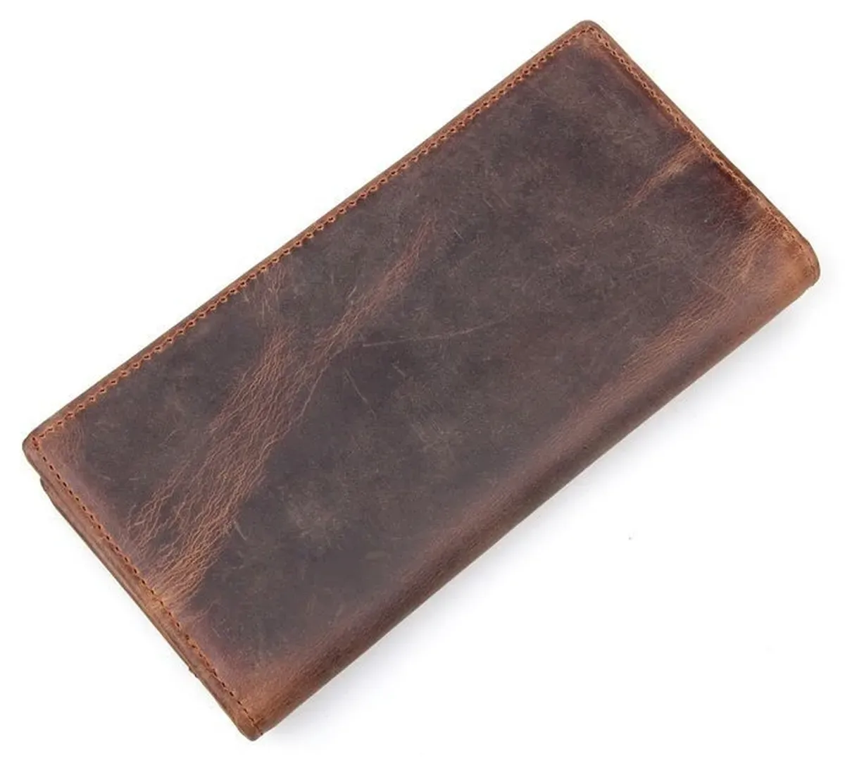 Сучасний чоловічий купюрник із натуральної високоякісної вінтажної шкіри. Гаманець надійно прошитий надміцною ниткою коричневого кольору. Шви рівні, акуратні. Аксесуар упакований в текстильний чохол пилу.