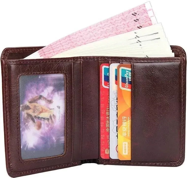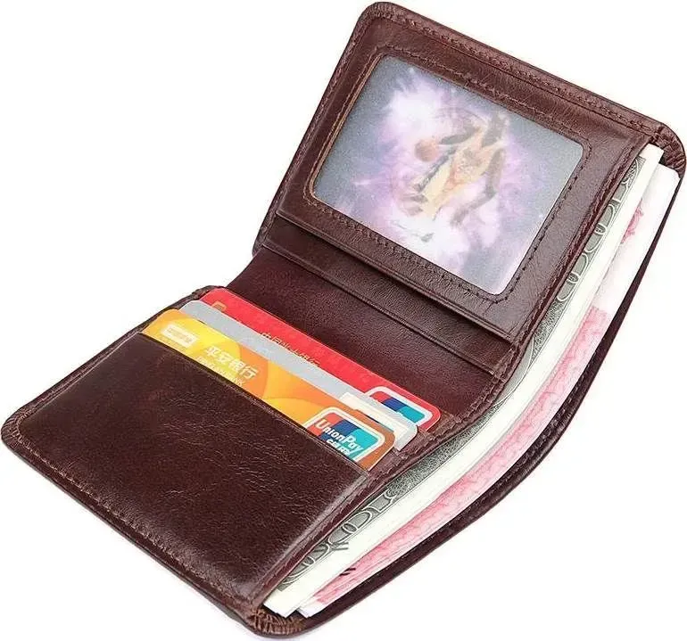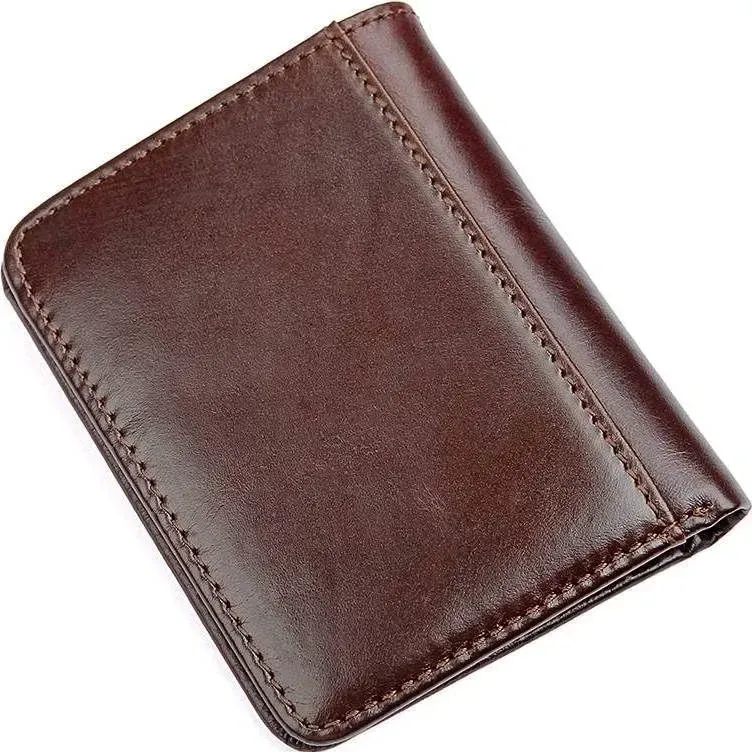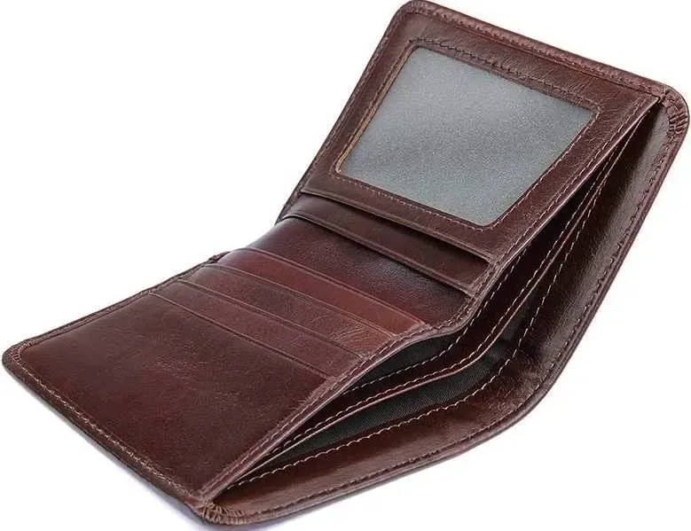 Вертикальний чоловічий гаманець коричневого кольору. Аксесуар виконаний з натуральної високоякісної гладкої шкіри приємної на дотик. Гаманець акуратно прошит світло-коричневою ниткою, що надає йому родзинку.