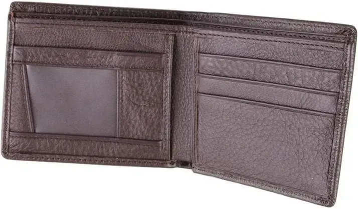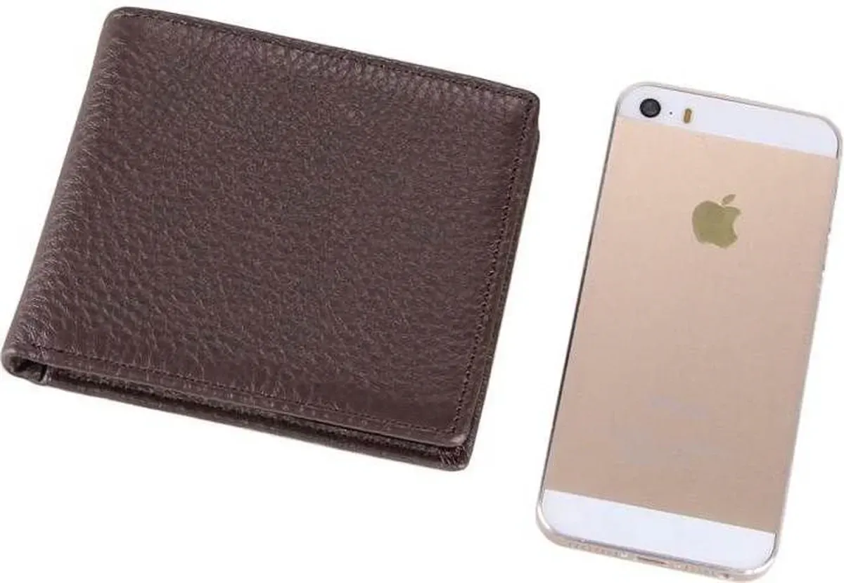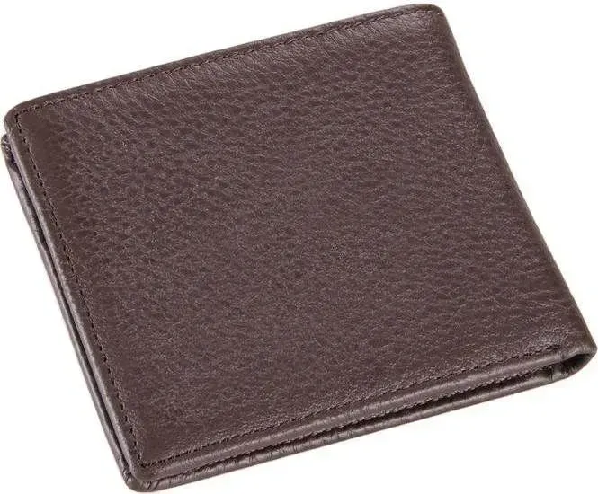 Надійний чоловічий гаманець коричневого кольору. Аксесуар виконаний з натуральної високоякісної фактурної шкіри. Аксесуар упакований у білий мішок пилу. /> - 4 осередки для карток (одна під прозорою плівкою).