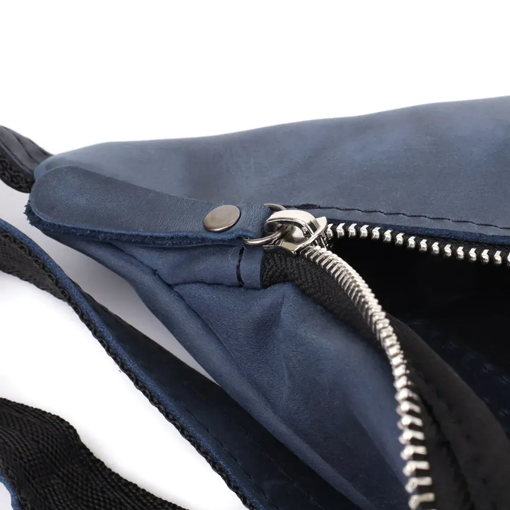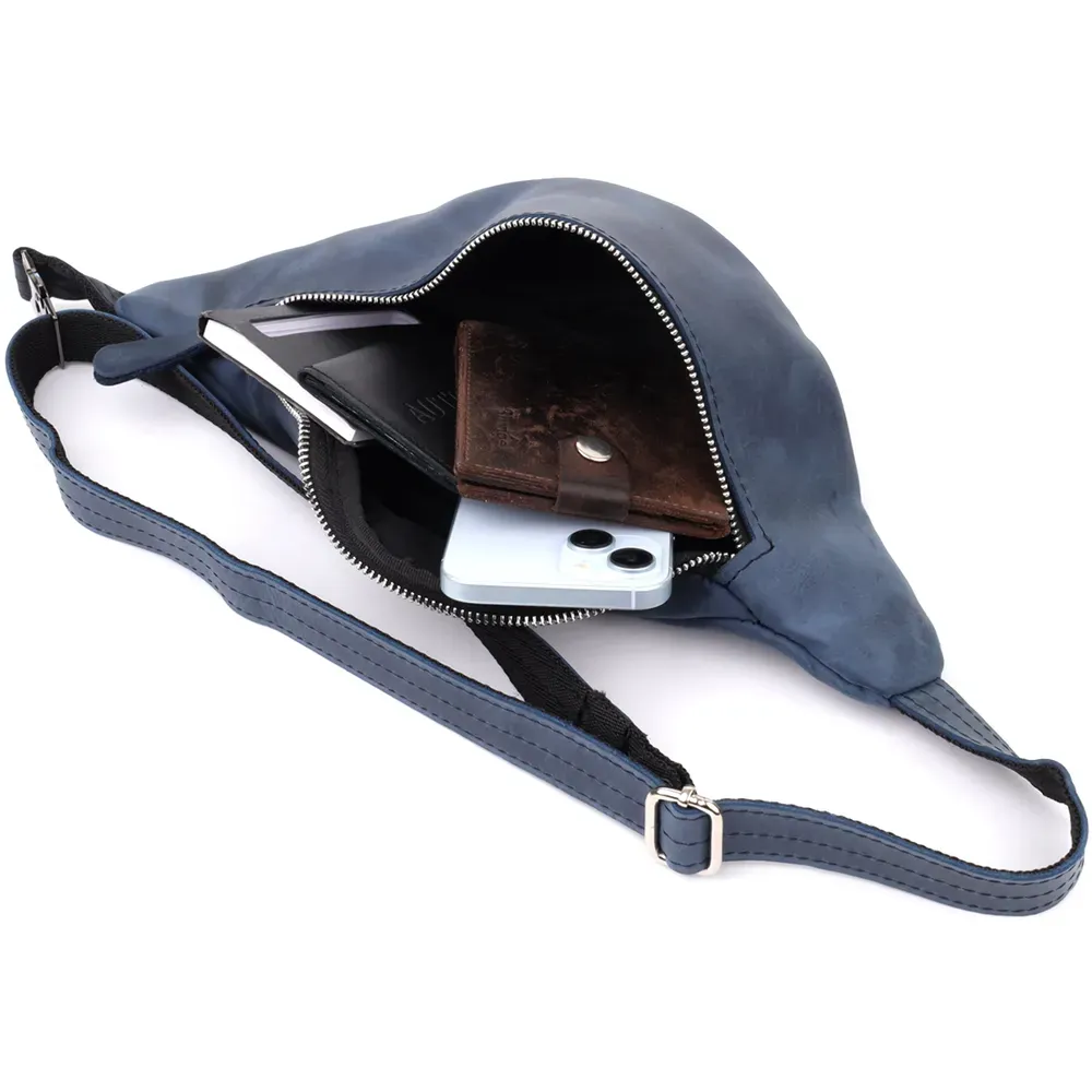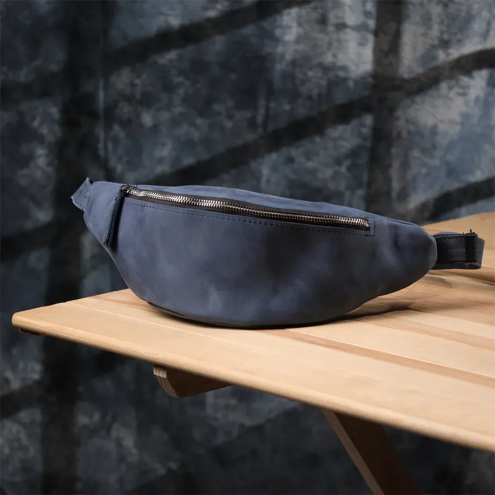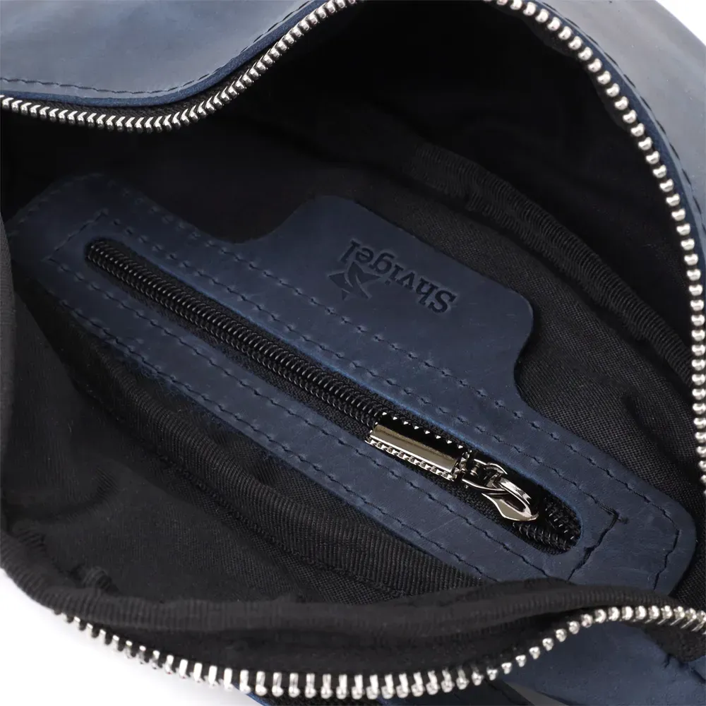 Сумка-бананка з натуральної шкіри Shvigel у синьому кольорі – сучасний акцент та українська якість. Чоловіча сумка-бананка від українського бренду Shvigel у глибокому синьому кольорі – це вдале поєднання практичності, сучасного стилю та оригінальності. Модель виконана із міцної натуральної вінтажної шкіри, яка не тільки виглядає благородно, а й чудово носиться.