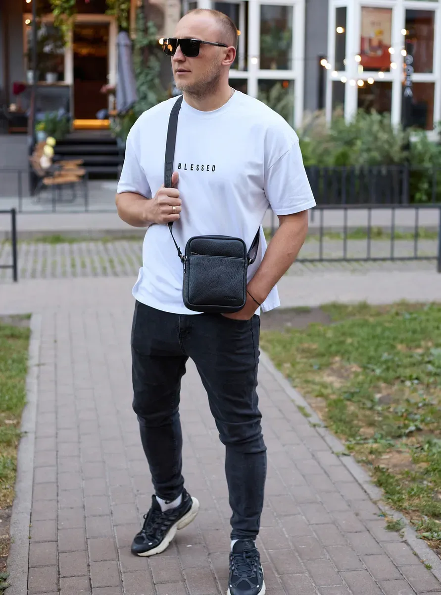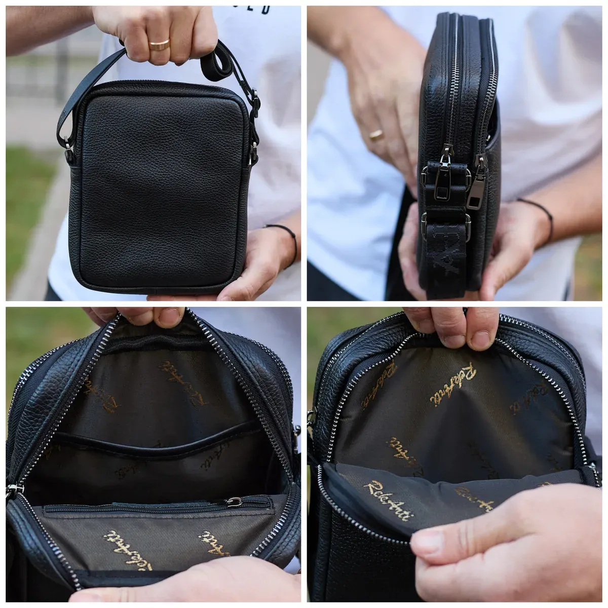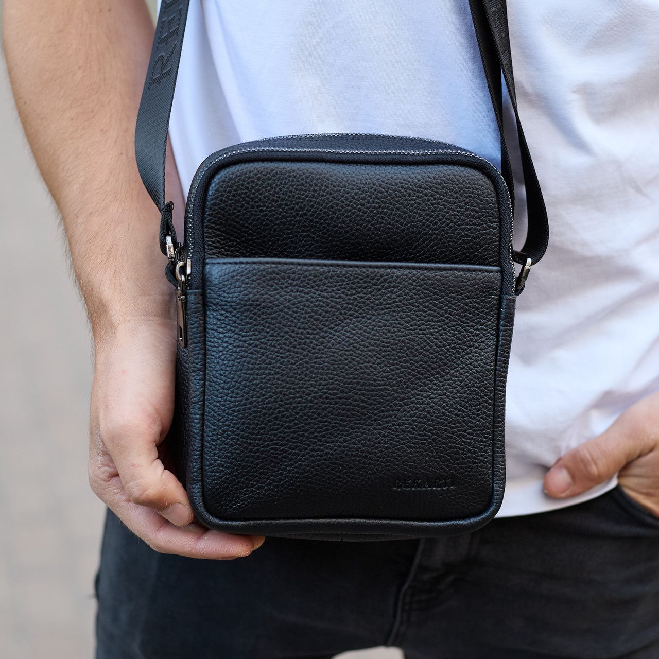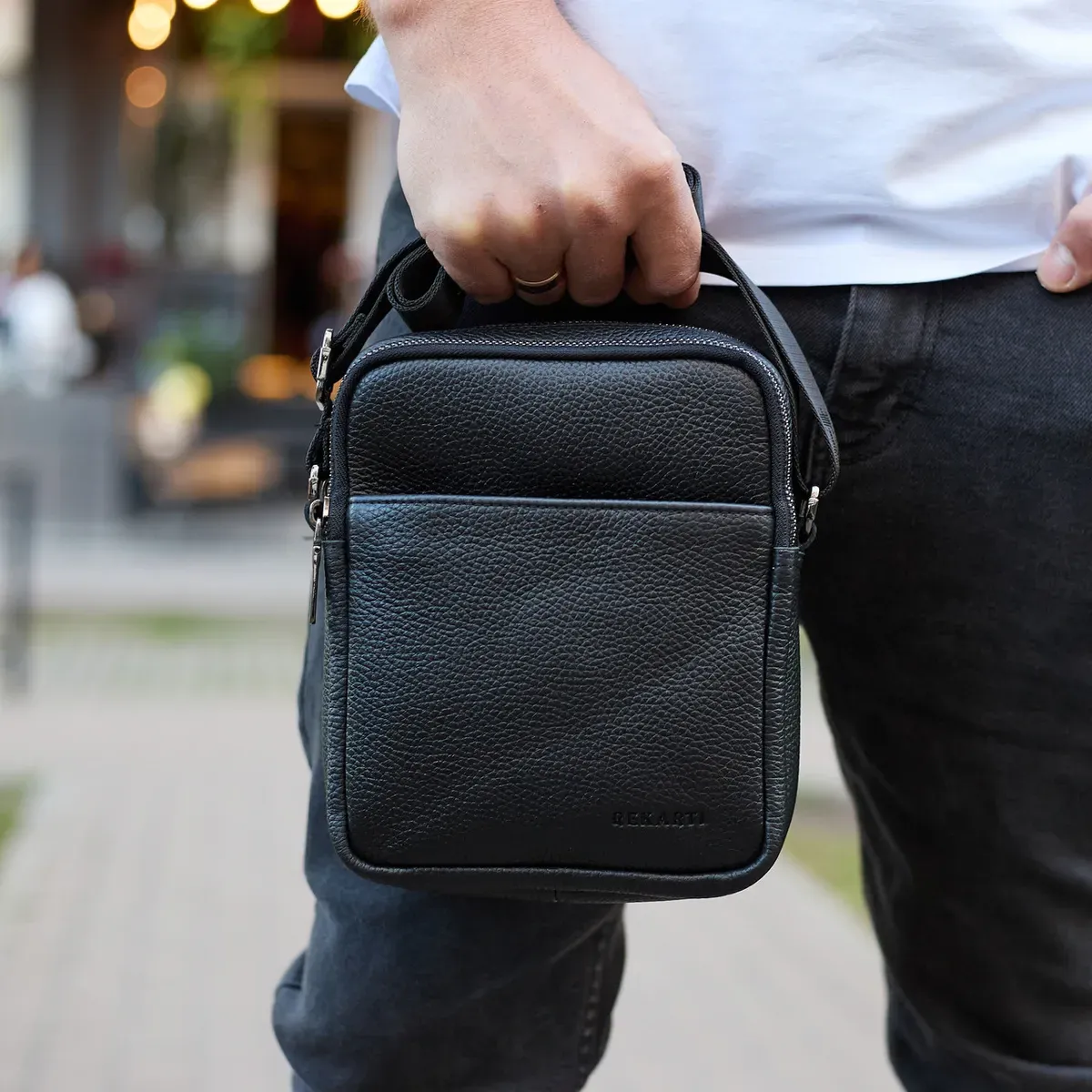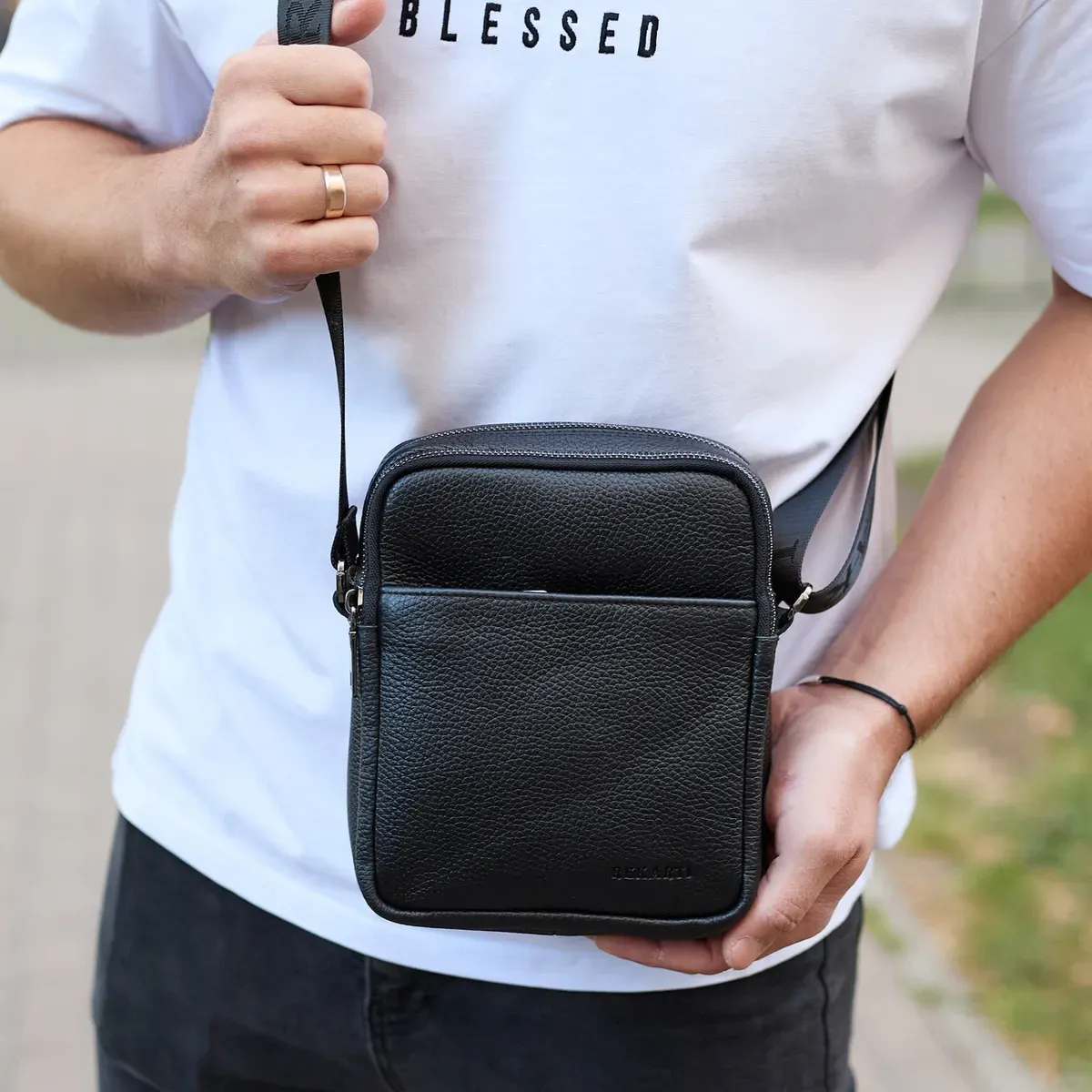 Чоловіча барсетка через плече, зернистая кожа 20х16х6, месенджер для міста, сумка для телефону та документів, чорна