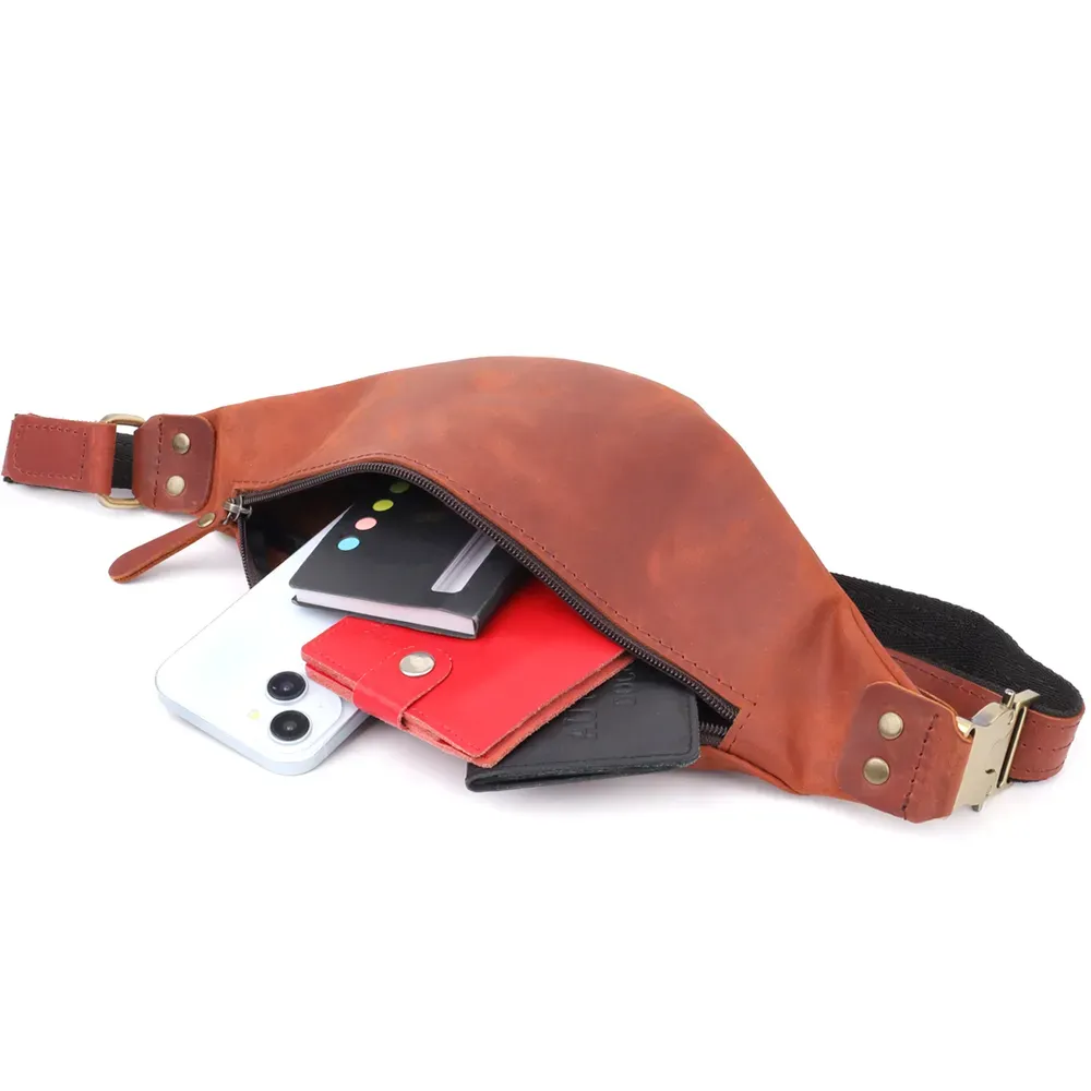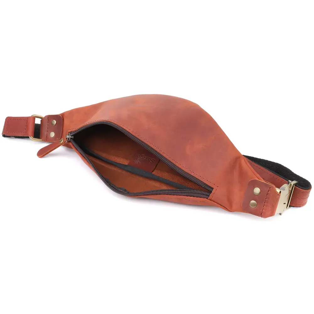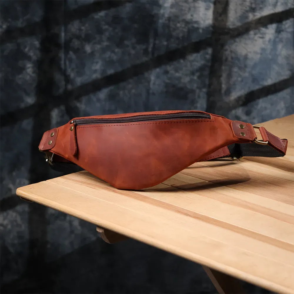 Чоловіча сумка-бананка із вінтажної рудої шкіри – яскравий акцент вашого образу. Ця сумка-бананка виготовлена з натуральної шкіри з виразною вінтажною фактурою та благородним рудим відтінком, який робить аксесуар по-справжньому помітним та стильним. Теплий рудий колір надає моделі індивідуальності, підкреслюючи природну красу матеріалу.