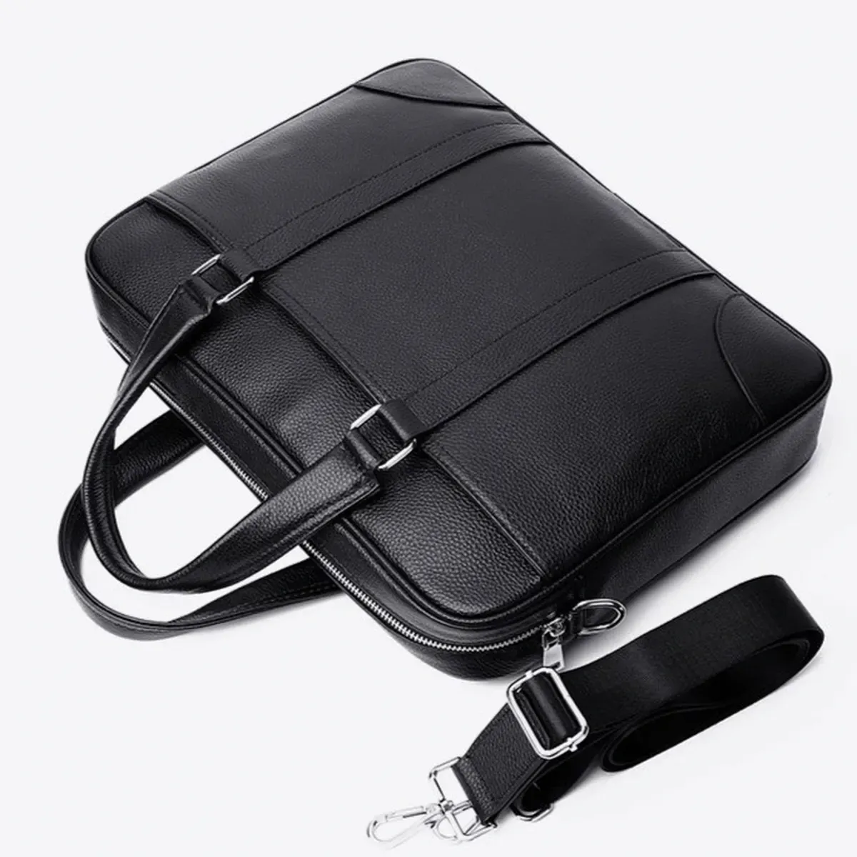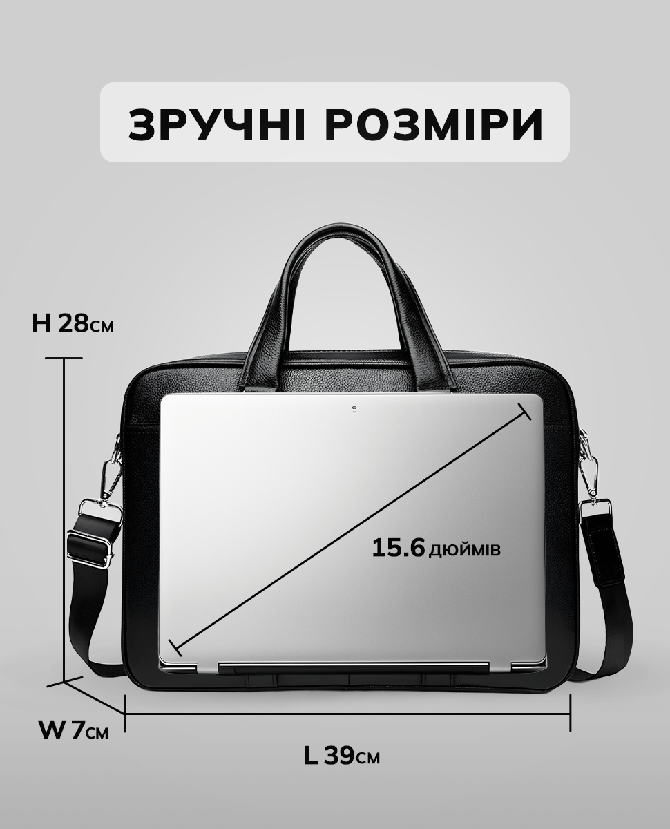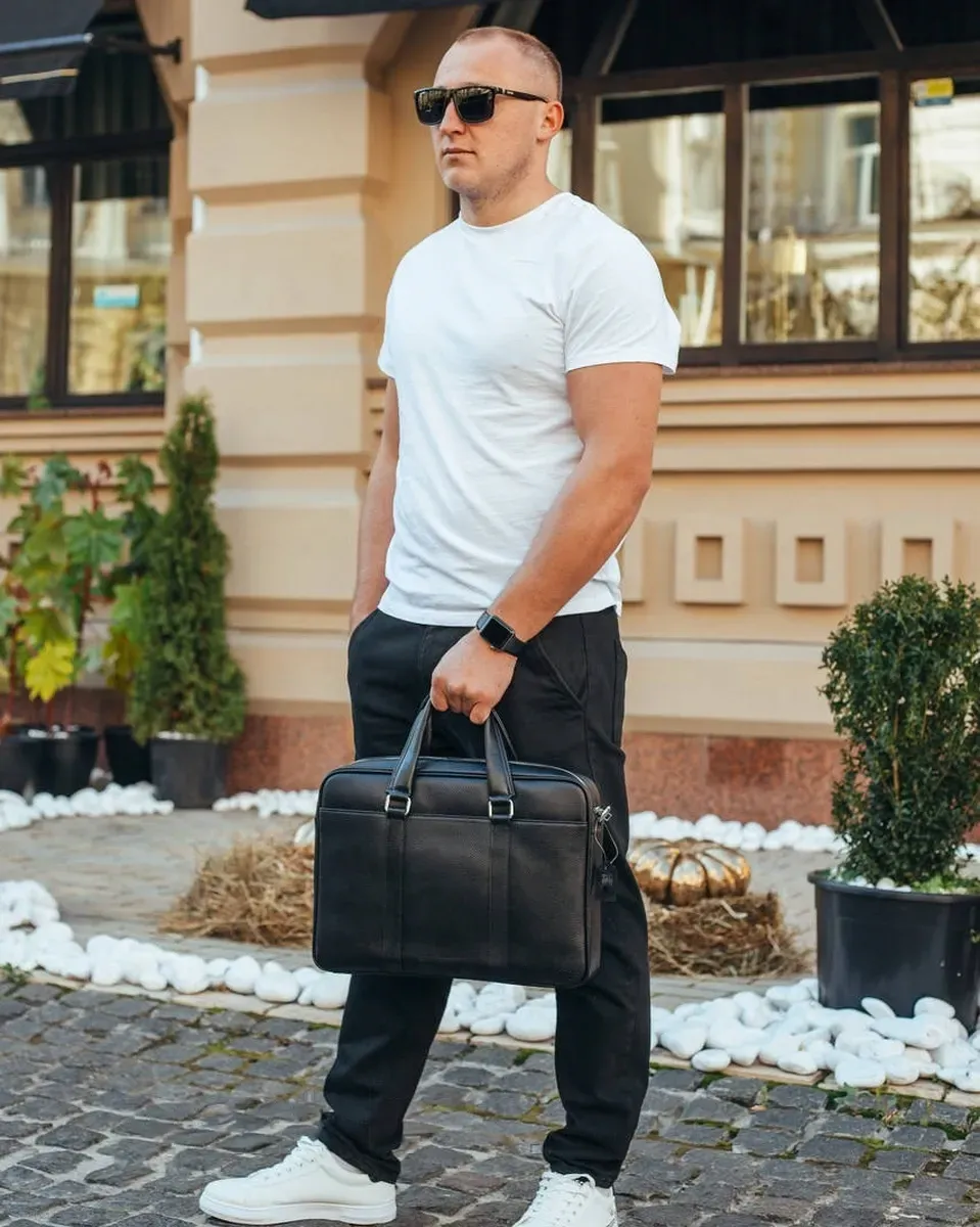 Чоловіча шкіряна класична сумка для ноутбука та документів 40x30x8, вмісткий портфель для паперів KL-63834, чорний