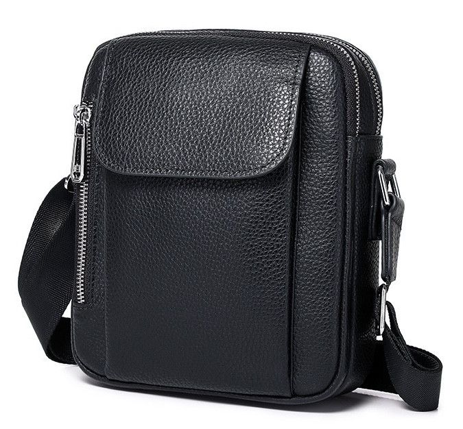 Чоловіча шкіряна сумка-барсетка через плече чорна Bexhill