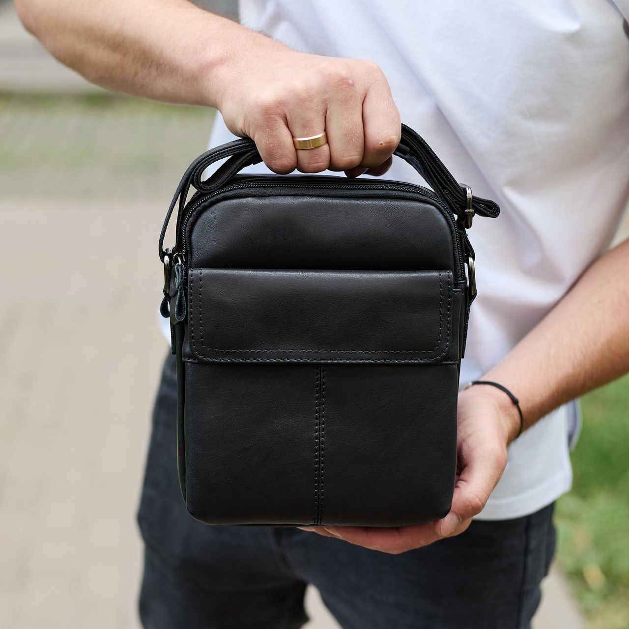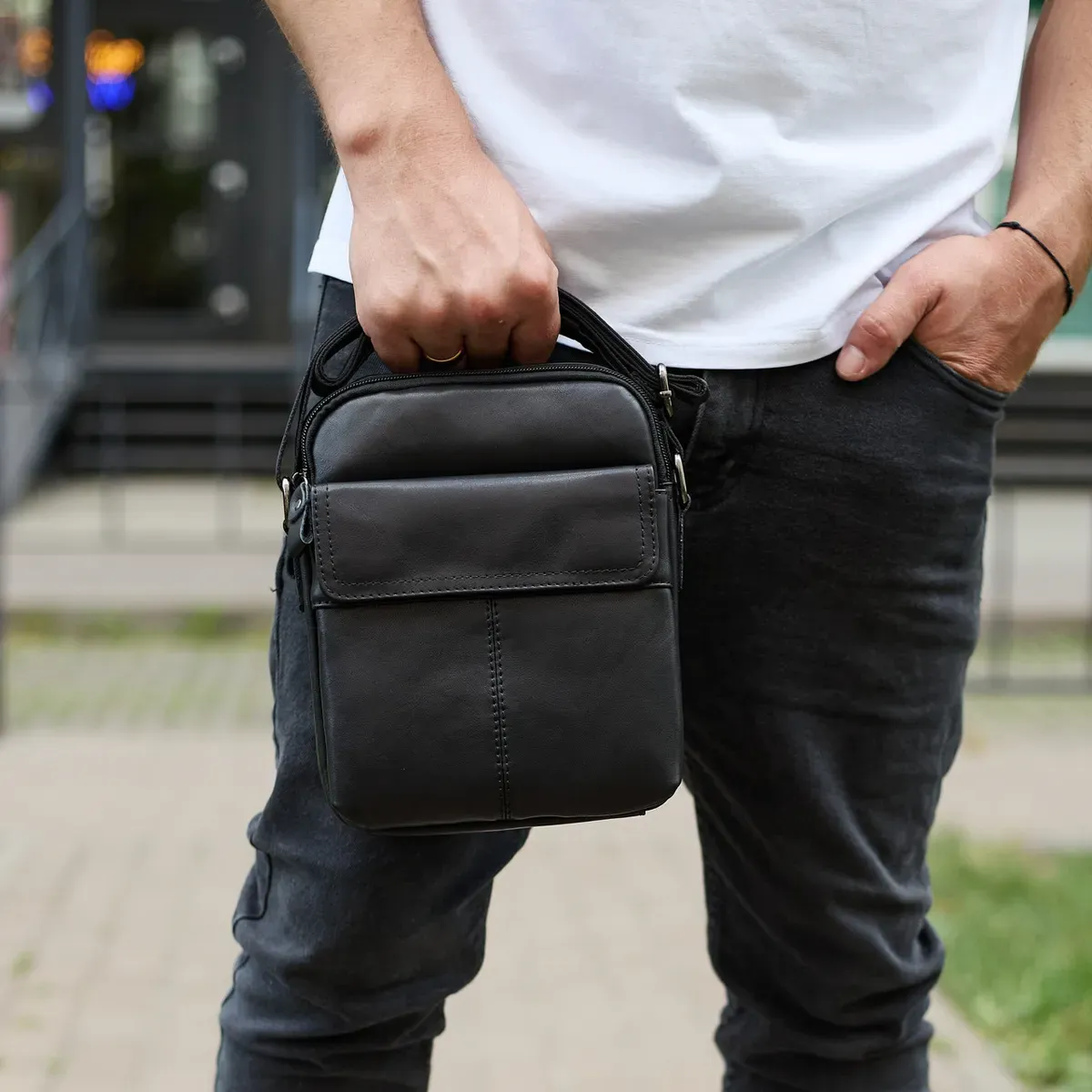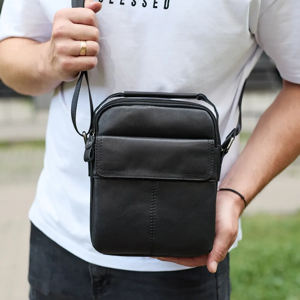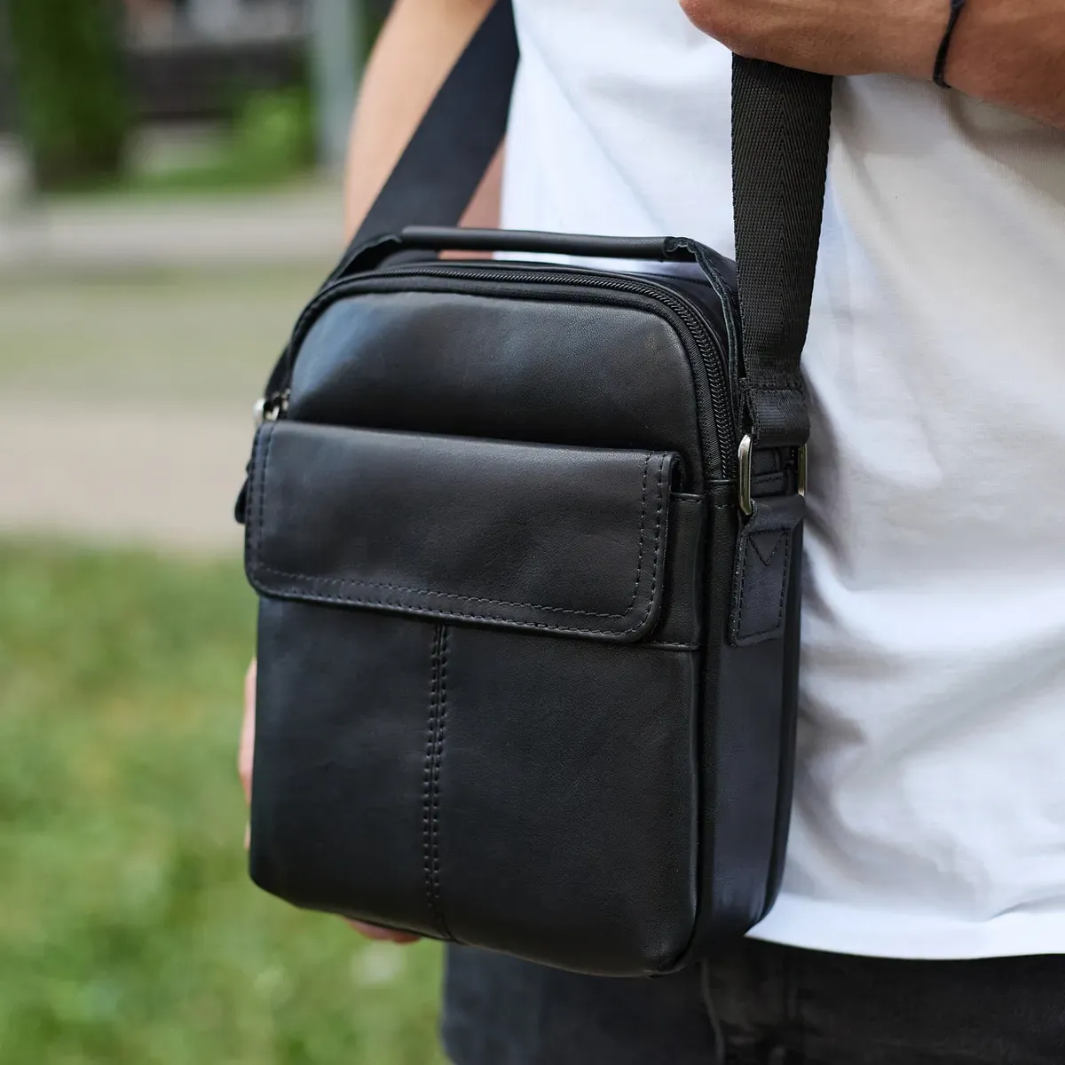 Чоловіча шкіряна сумка, барсетка з натуральної шкіри 24х18х8, сумочка для чоловіків, чорна