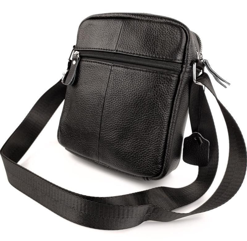 Чоловіча шкіряна сумка через плече 18х21х7, барсетка для документів Tiding Bag M38-10131A чорна