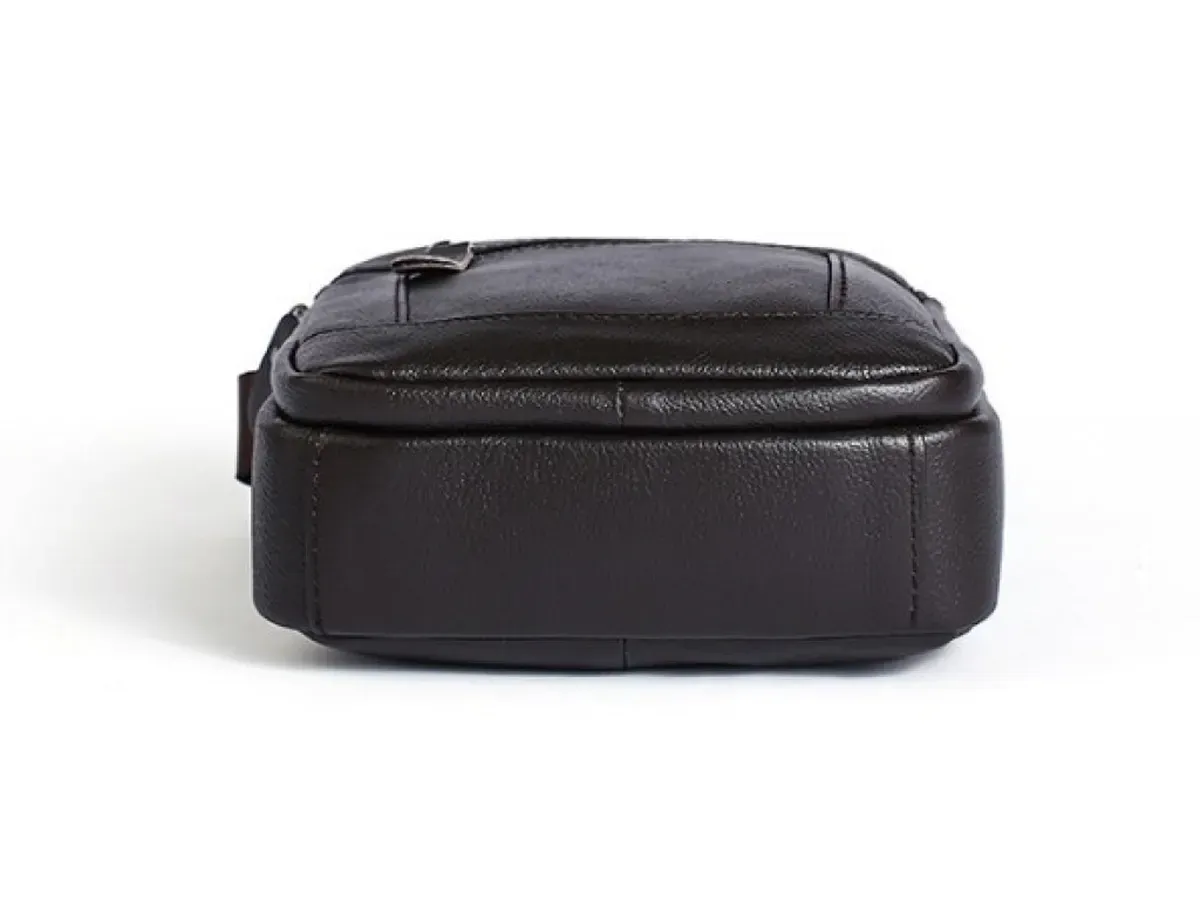 Практична чоловіча сумка виготовлена з якісних матеріалів: натуральної шкіри, текстильної підкладки та металевої фурнітури. Чоловіча сумка має зручний регульований ремінь через плече. Ця шкіряна сумка-месенджер має два відділення, які закриваються блискавкою. На тильній стороні сумки розташована кишеня, яка так само закривається блискавкою. На своїй лицьовій частині ця шкіряна сумка має ще дві кишені, які також закриваються за допомогою блискавок.