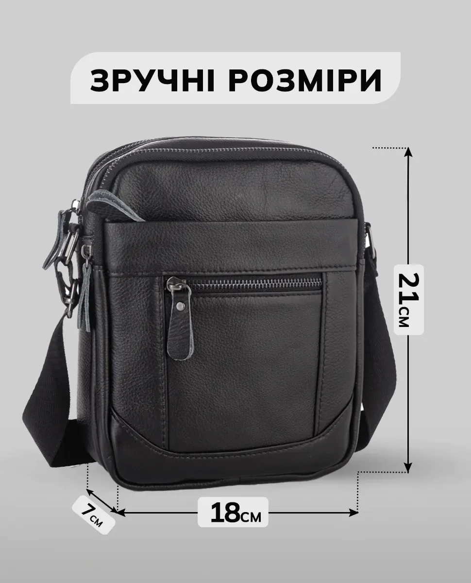 Шкіряна чоловіча чорна сумка через плече Tiding Bag LA3314-1BL