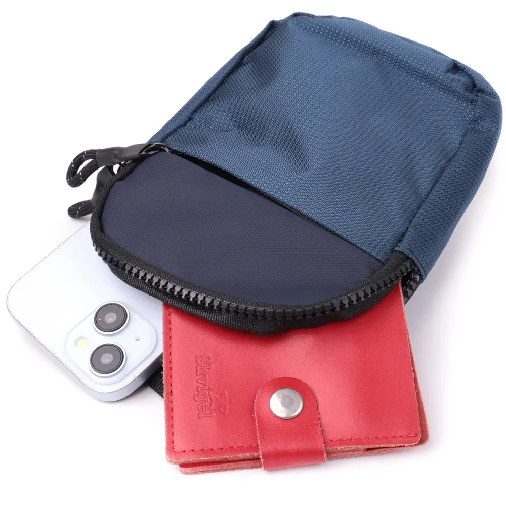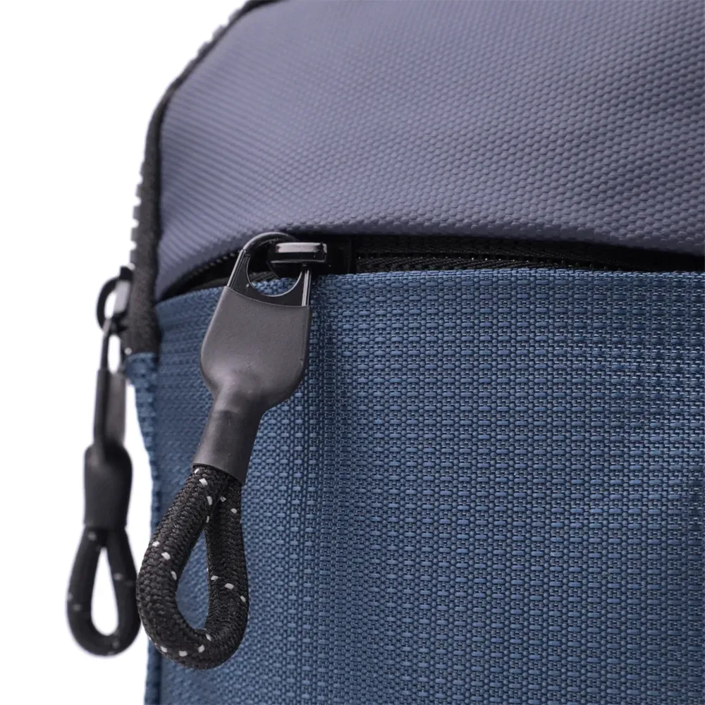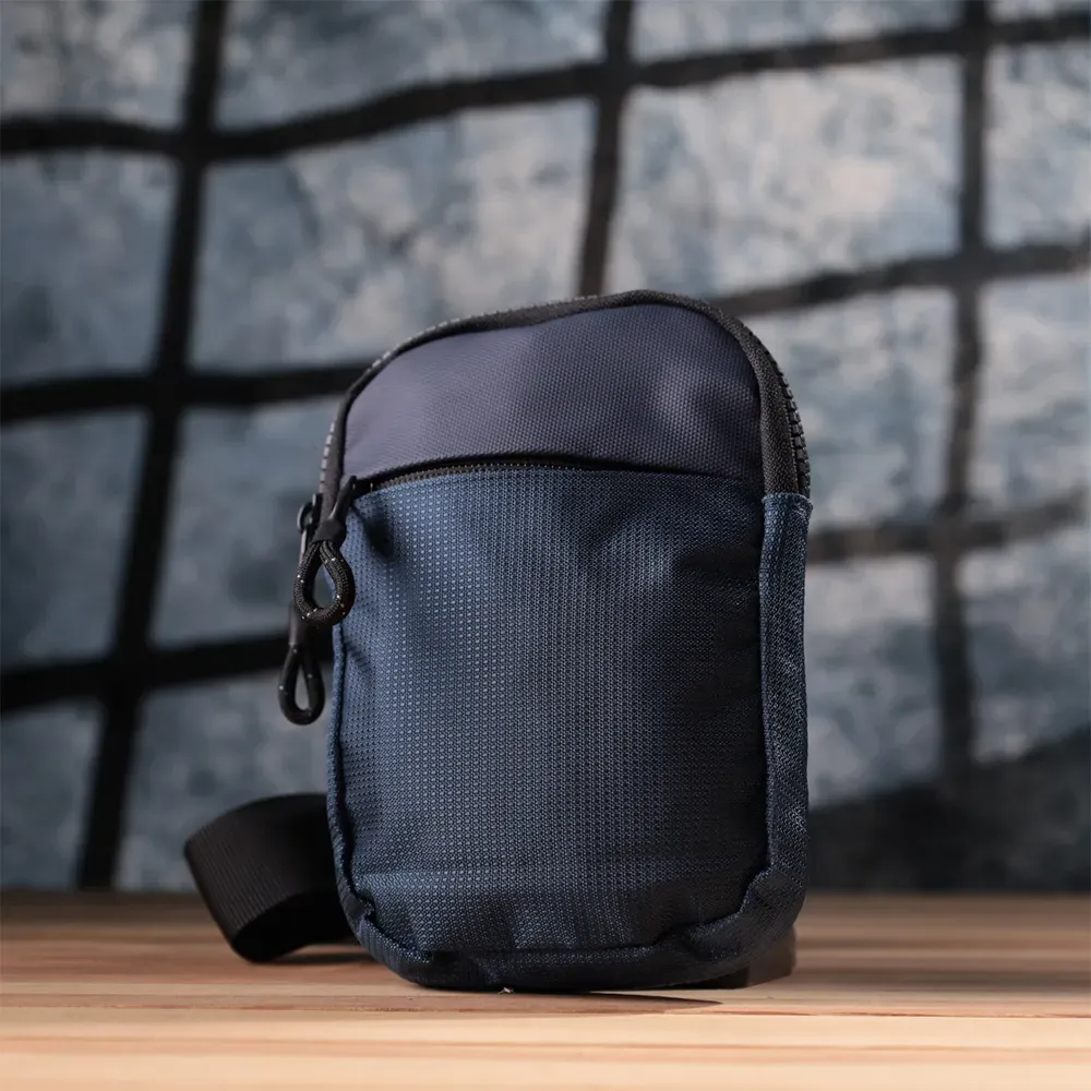 Перед Вами найпрактичніший варіант сумки - слінг бег, яка підійде як для повсякденного використання, так і в подорожі, коли всі цінні речі мають бути в безпечному місці та під рукою. Аксесуар виготовлений з якісного текстилю в комбінації синього та темно-синього кольору, що надає йому ексклюзивного вигляду та стилю. У моделі використано якісну фурнітуру чорного кольору. Сумка легко вміщує паспорт, телефон, ключі, гаманець та ще кілька дрібниць. Якщо Ви шукаєте зручну та легку сумку, яка задовольнить Вас за такими параметрами, як - міцність, практичність, місткість, ексклюзивність, універсальність, то ця модель перед Вами, вона має всі вищеперелічені якості та стане одним з Ваших улюблених аксесуарів.
