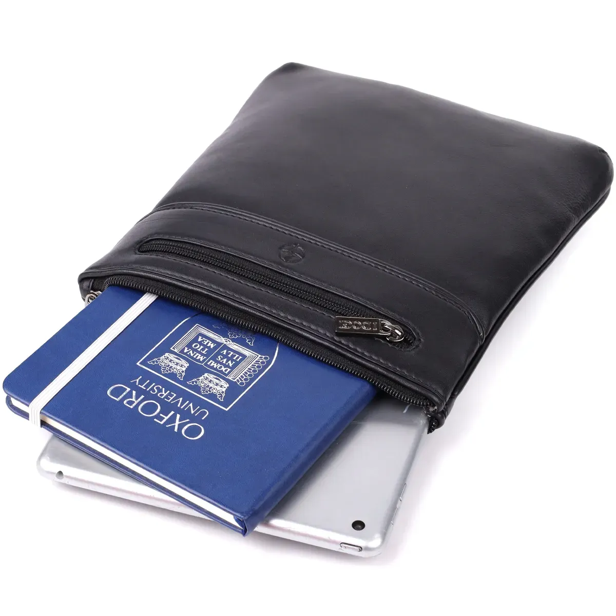 Шкіряна сумка-планшетка Tony Perotti чорного кольору – практичний та стильний аксесуар для повсякденного використання. Модель виконана з натуральної шкіри та оснащена зручним ременем, що робить її ідеальною для міста, роботи та поїздок. Продуманий внутрішній простір дозволяє безпечно розмістити планшет чи електронну книгу, документи та особисті речі. Фірмове тиснення «троянда вітрів», характерне для колекції Cortina, підкреслює оригінальність дизайну та приналежність до бренду.