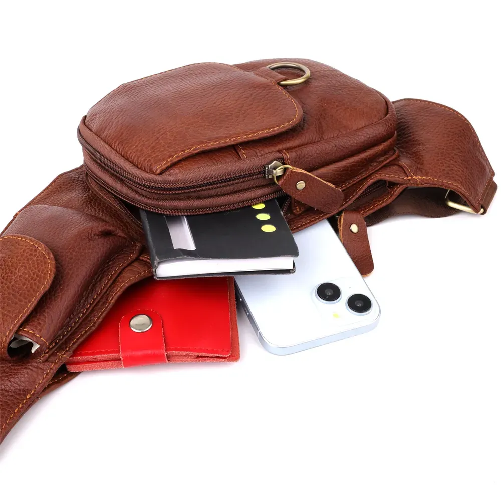 Напівкругла чоловіча шкіряна сумка через плече — практичний та стильний аксесуар для сучасного чоловіка, який цінує якість та зручність.