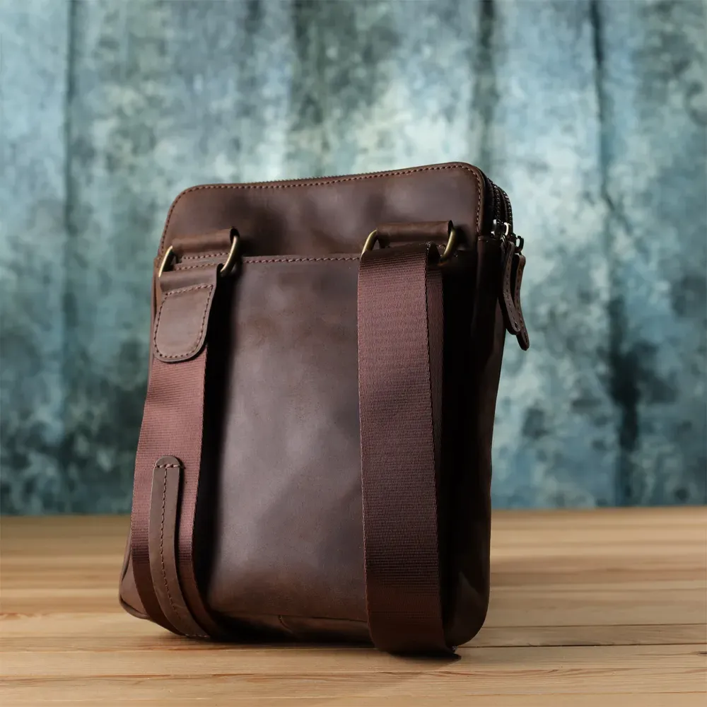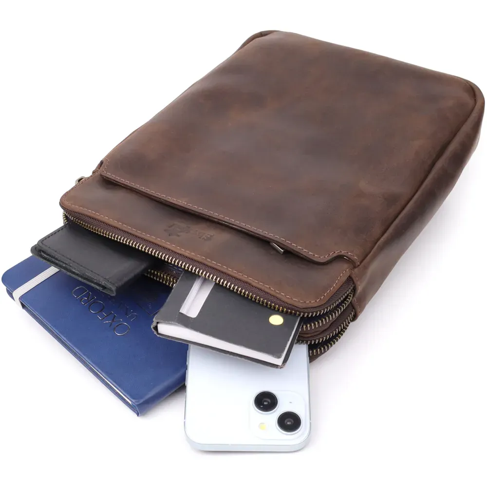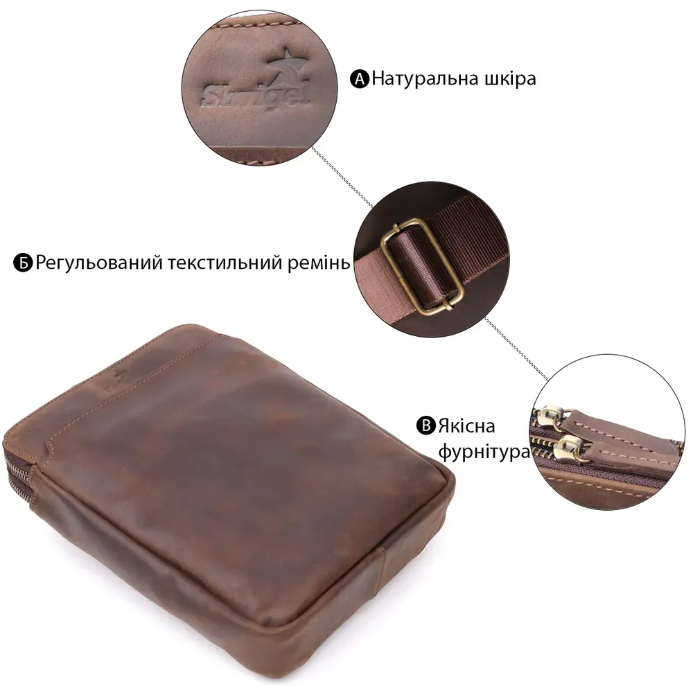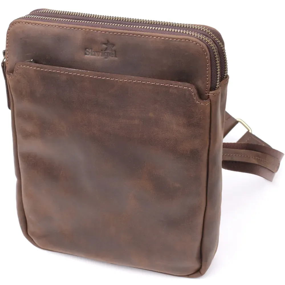 Чоловіча сумка через плече з вінтажної шкіри Shvigel 20866_1 Коричневий