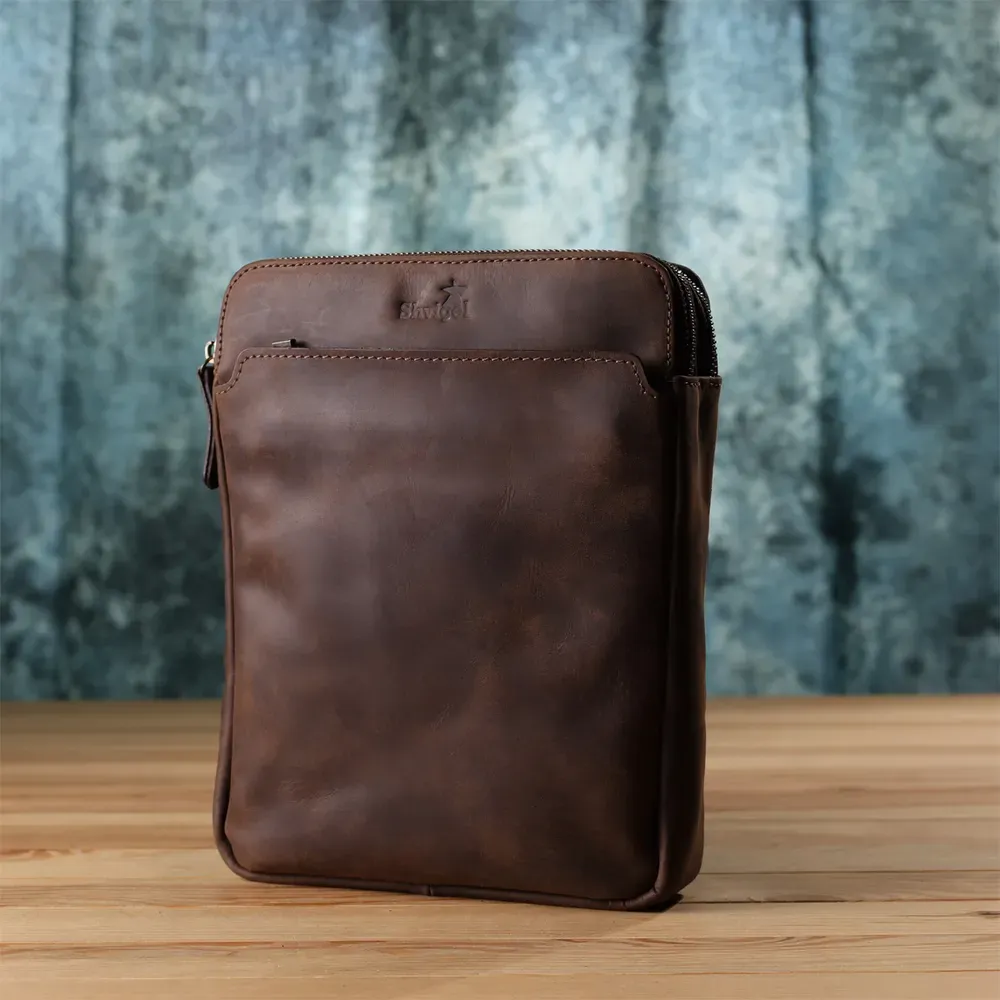 Чоловіча вертикальна сумка від українського бренду SHVIGEL виконана з натуральної вінтажної шкіри, яка згодом набуває благородного нальоту та підкреслює характер виробу. Компактні розміри та продумана організація внутрішнього простору дозволяють зручно розмістити документи, планшет чи особисті речі.