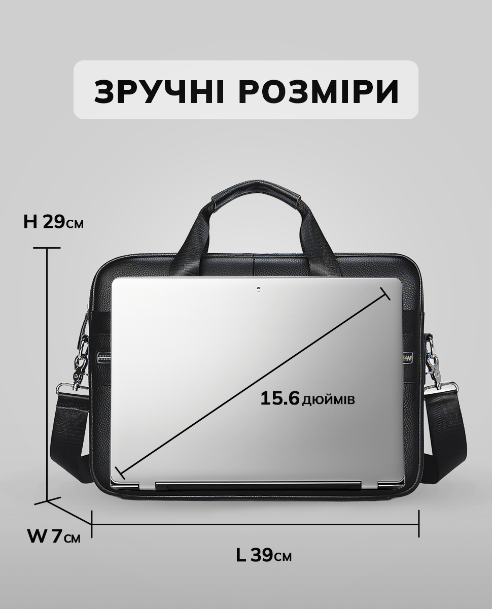 Чоловіча сумка для ноутбука та документів 39x28×8, портфель для офісної роботи, чорний