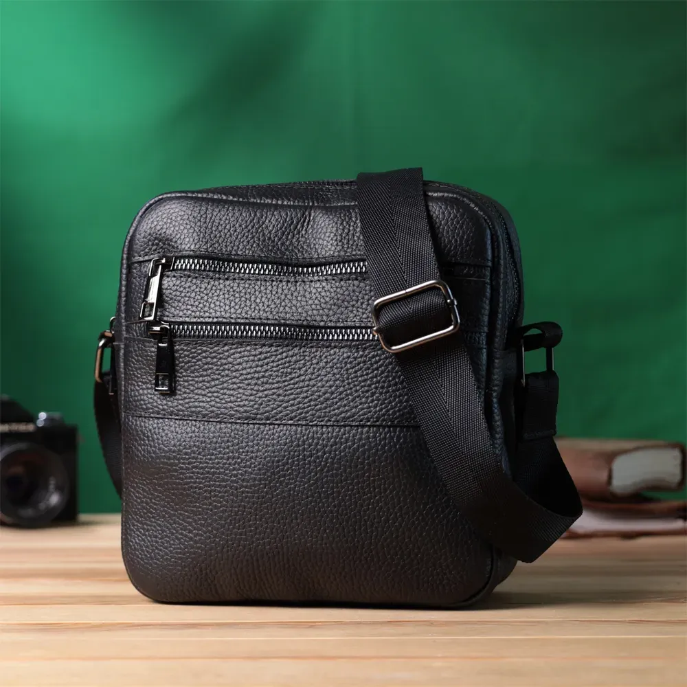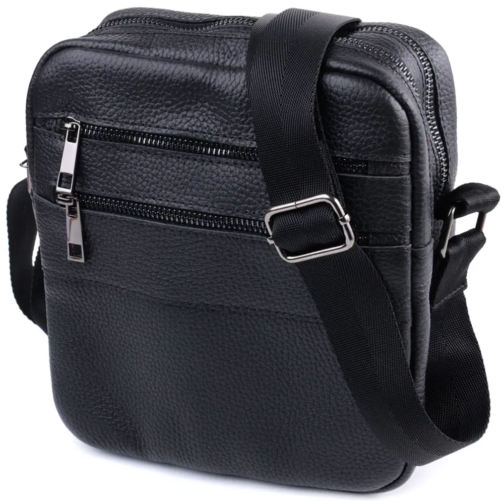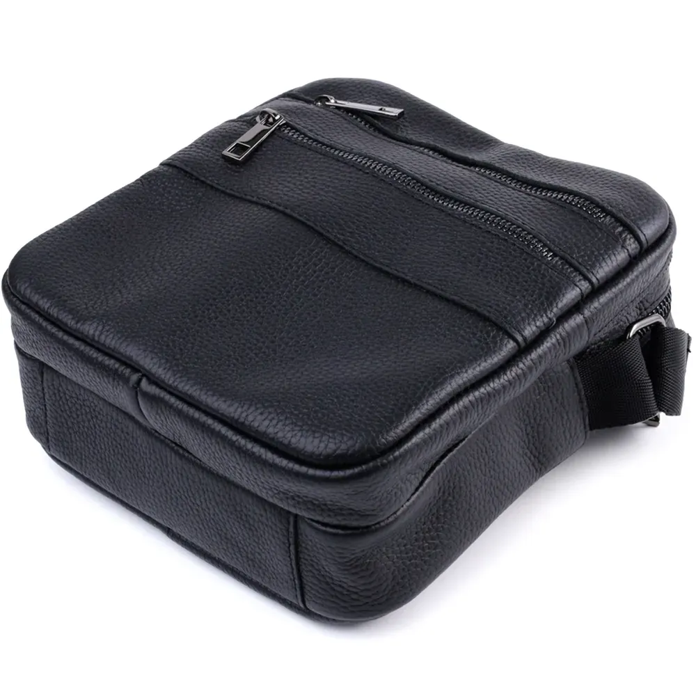 Чоловіча сумка месенджер із зернистої натуральної шкіри Shvigel 22847 Чорна