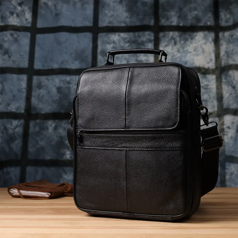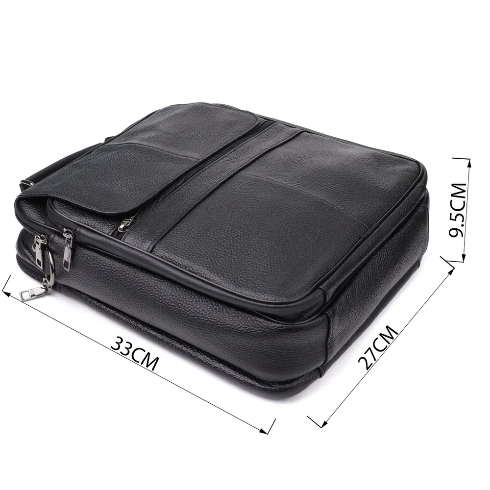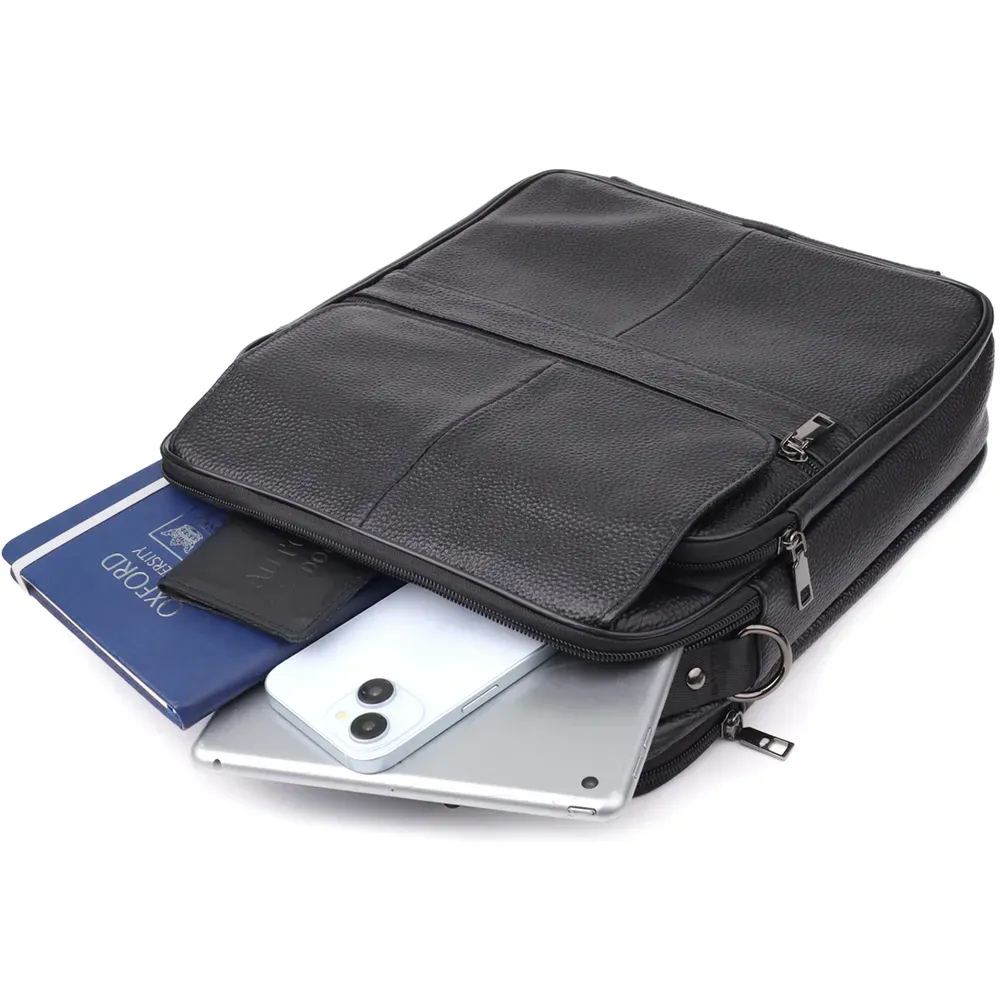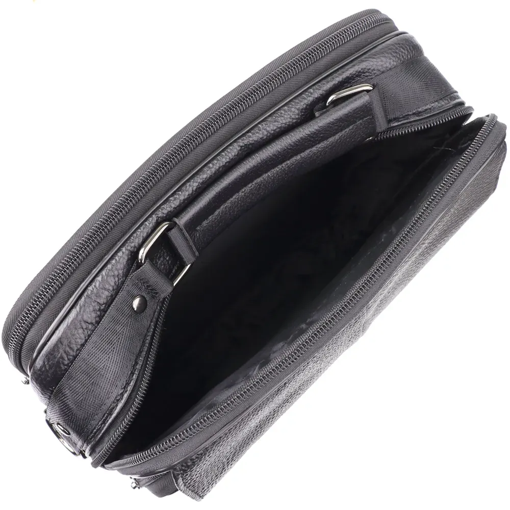 Практична шкіряна сумка виконана з високоякісної натуральної шкіри та поєднує в собі функціональність та стиль. Модель оснащена двома основними відділеннями на блискавці, одне з яких включає таємну кишеню на блискавці на задній стінці для надійного зберігання важливих дрібниць.