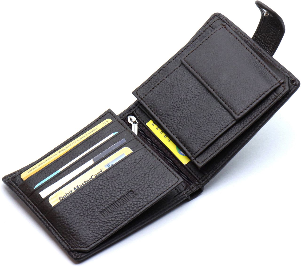 Компактний чоловічий гаманець виконаний із натуральної шкіри, завдяки цьому він завжди виглядає стильно і вказує на чудовий смак господаря. Аксесуар має 2 відділення для банкнот, що дозволяє акуратно користуватися ними. Для документів знайдеться місце у прилеглих кишенях чи прозорих віконцях. Також шкіряний гаманець має монетницю, відділення з вертикальною блискавкою та 12 секцій для кредитних карток – все ємнозроблено зі смаком.