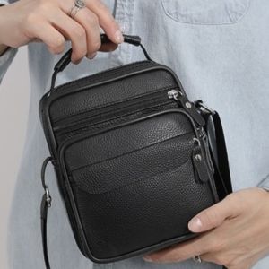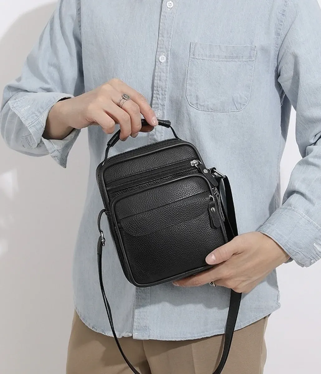 Чоловіча шкіряна барсетка через плече компактна функціональна з ручкою чорна 86802