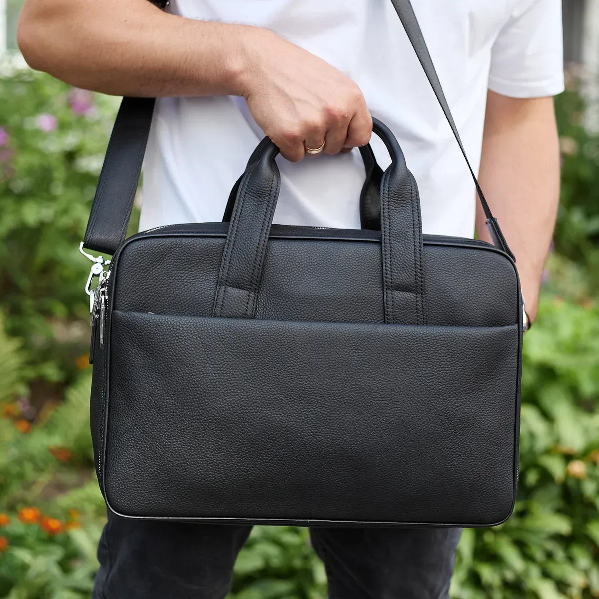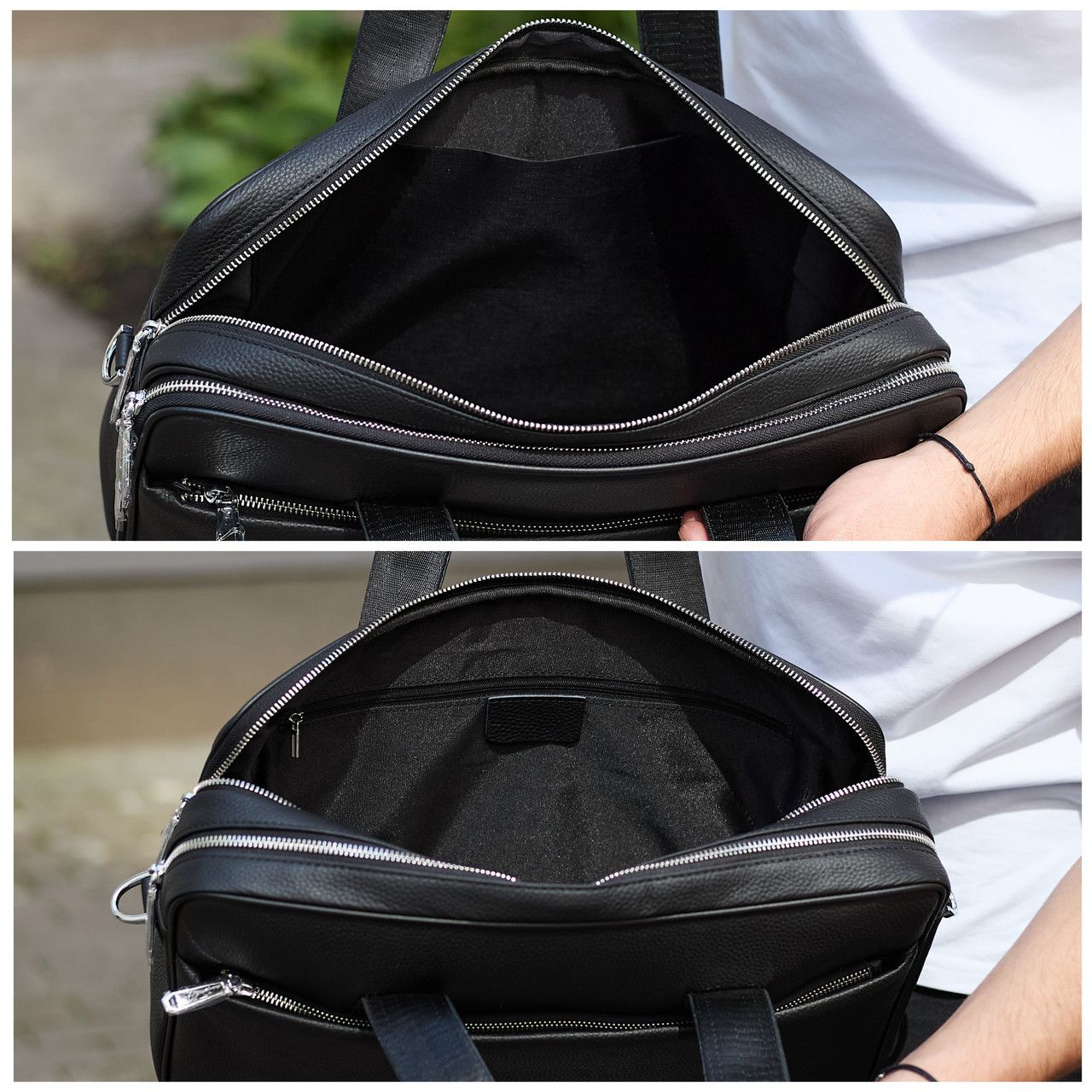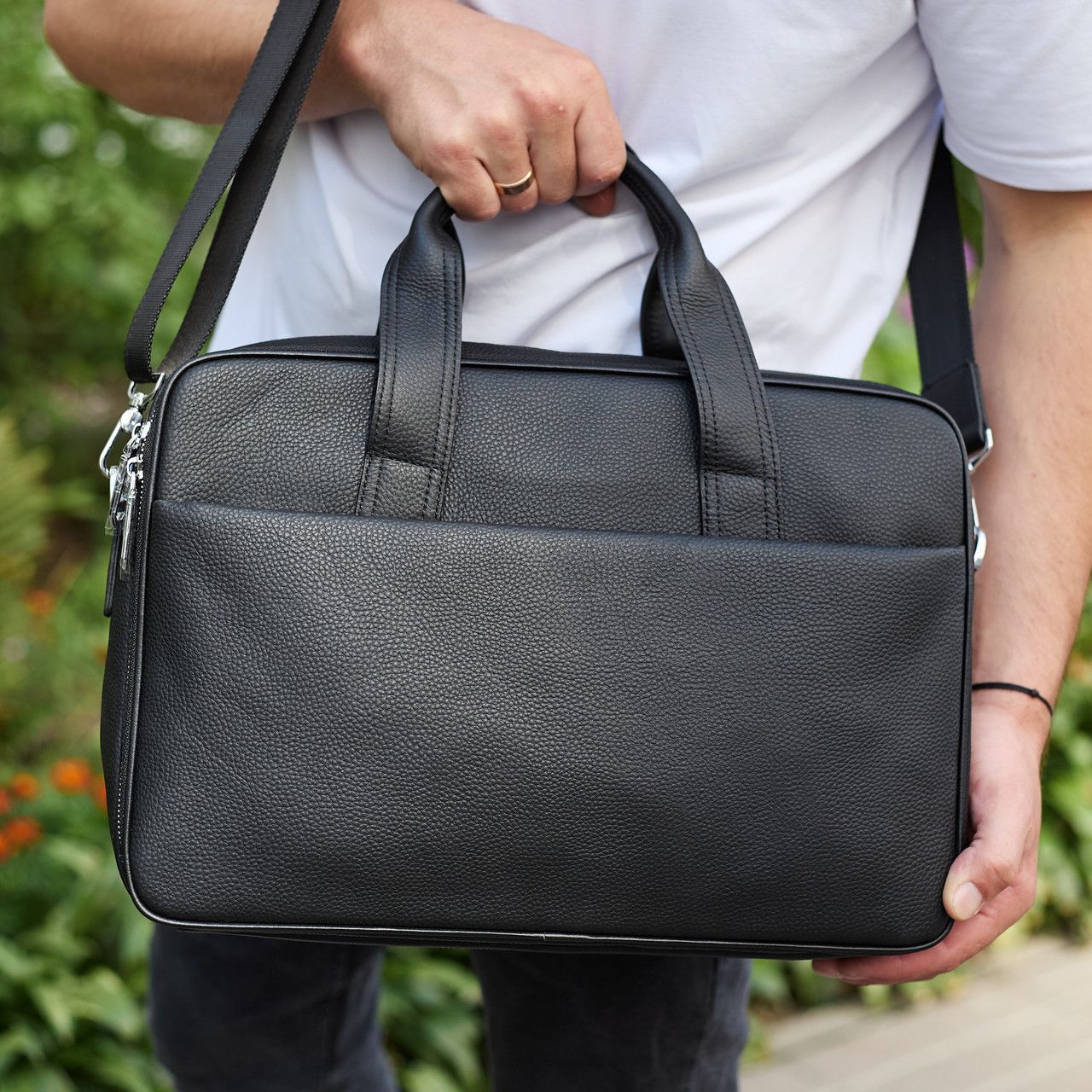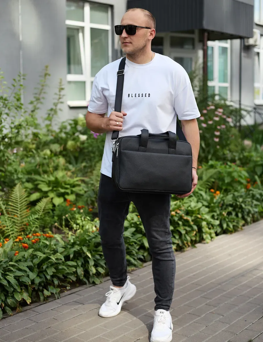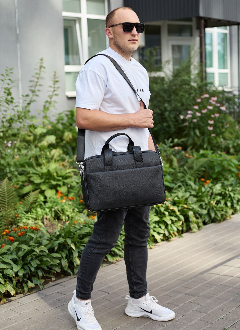 Чоловічий портфель на плече 40х28х10, офісний шкіряний месенджер, чоловіча ділова сумка для міста, чорний