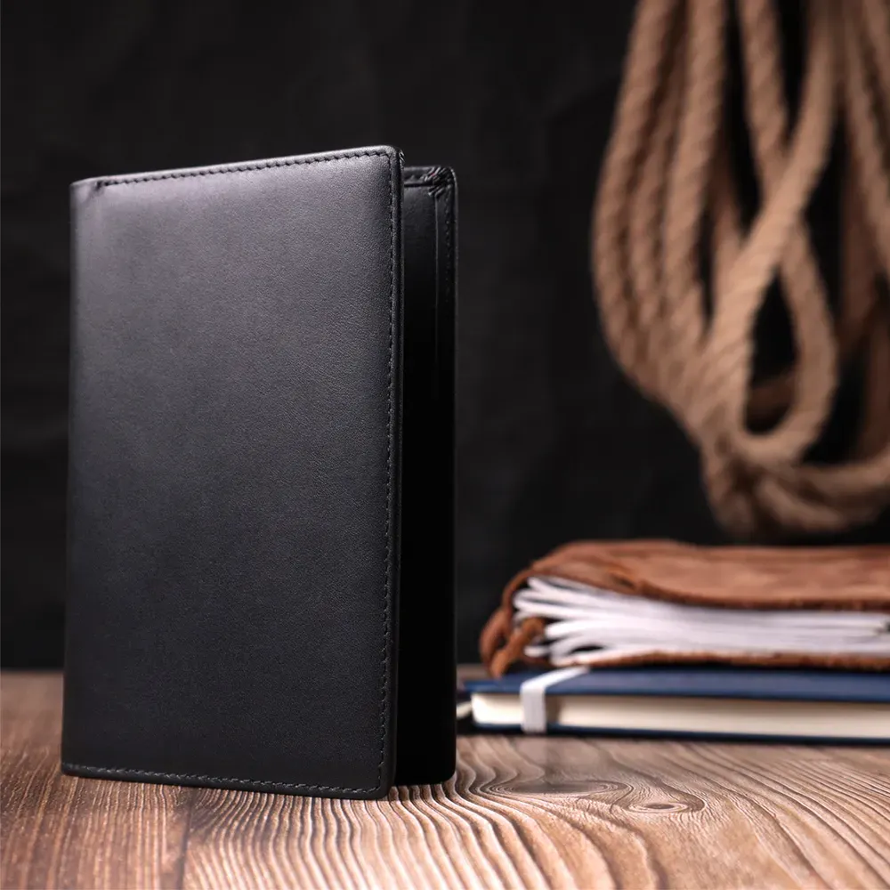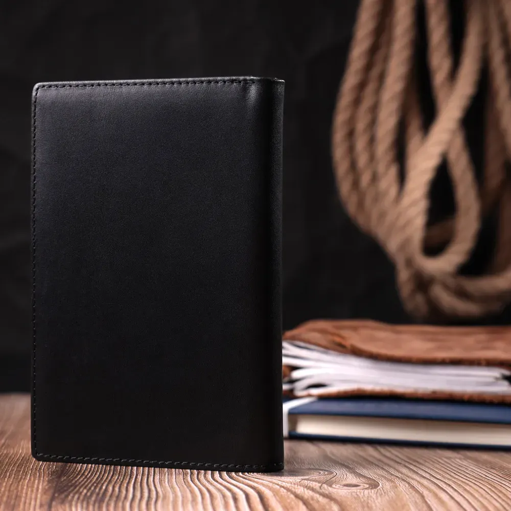 Чоловічий портмоне без застібки з натуральної шкіри Vintage 15036 Чорний