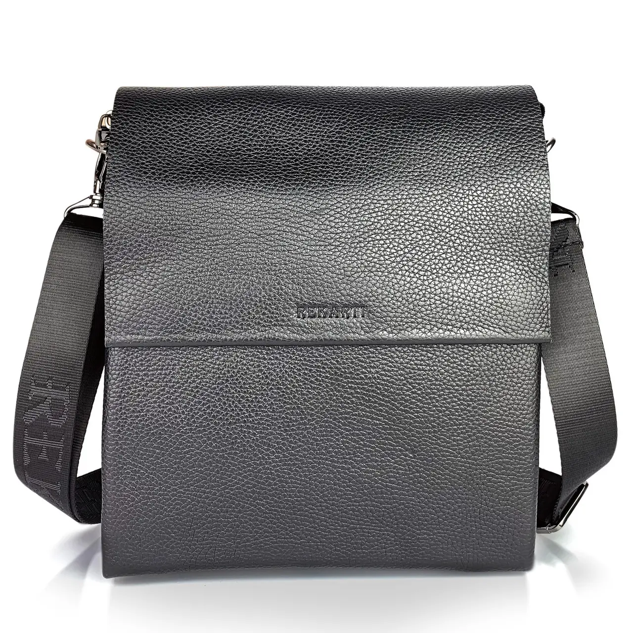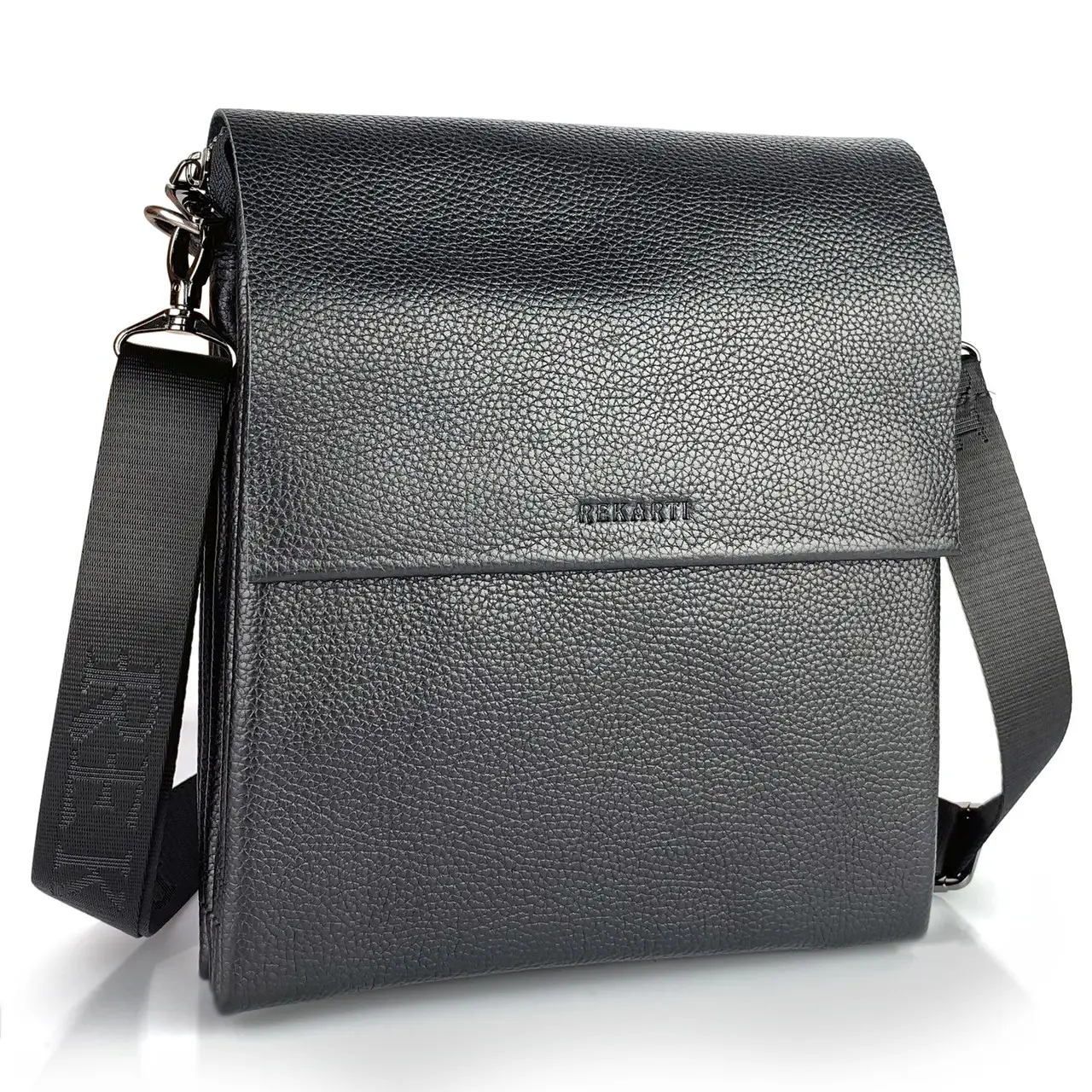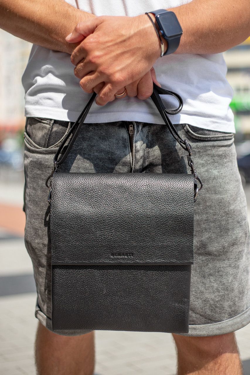Стильна чоловіча сумка через плече, виготовлена з високоякісної натуральної шкіри. Під накидкою розміщене одне основне відділення, у якому розміщена потайна кишеня на блискавці, а також кишеня відкритого типу. Сумка має два додаткові відділення: одне з лицьової частини (під накидкою, без застібки) й одне з тильної частини (на блискавці). Відділення застібаються за допомогою якісної фурнітури. Ремінець сумки щільний, регульований, незнімний.