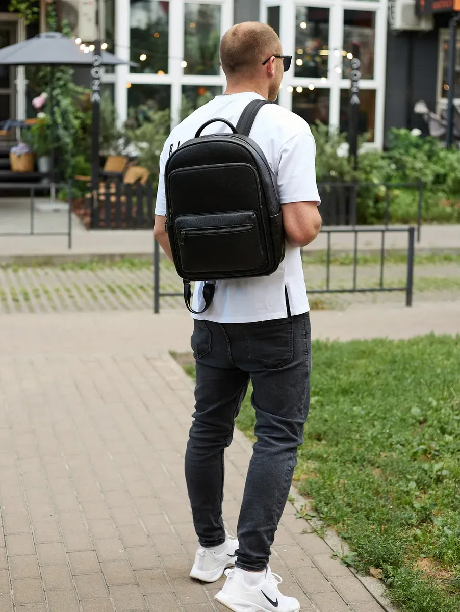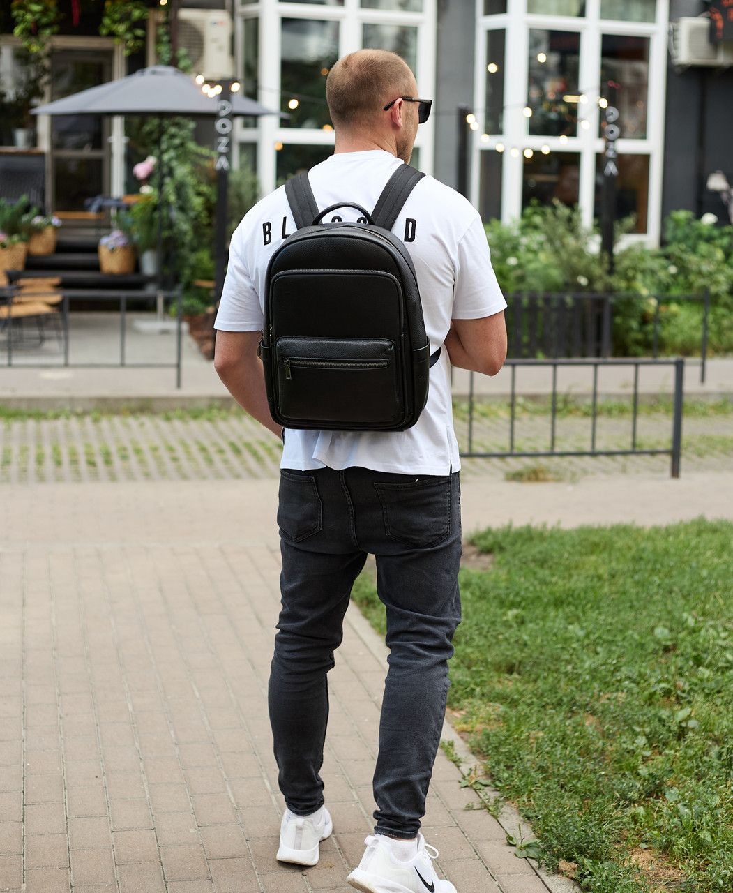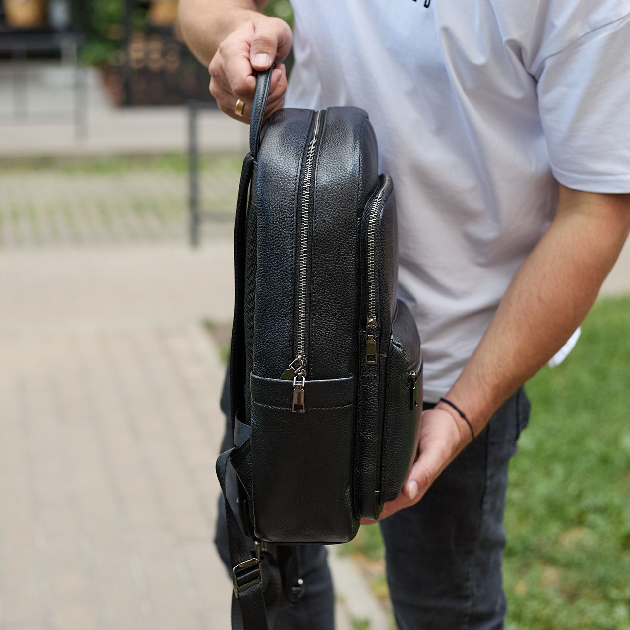 Чоловічий шкіряний рюкзак 41х31х16, універсальний міський наплічник для роботи та поїздок, офісна чоловіча сумка, чорний