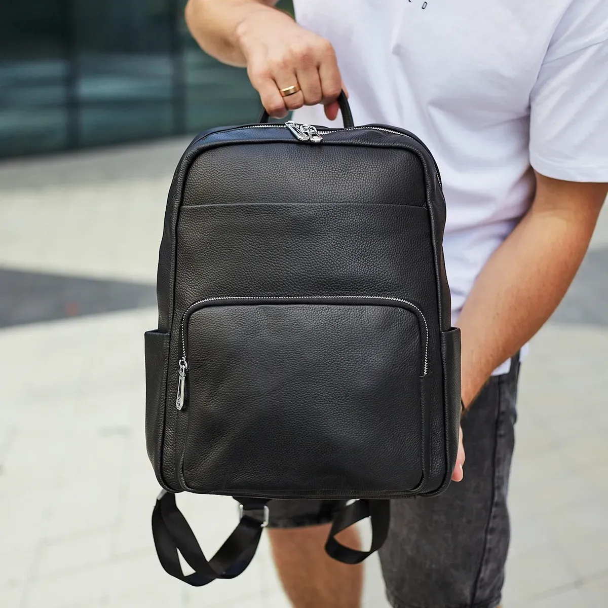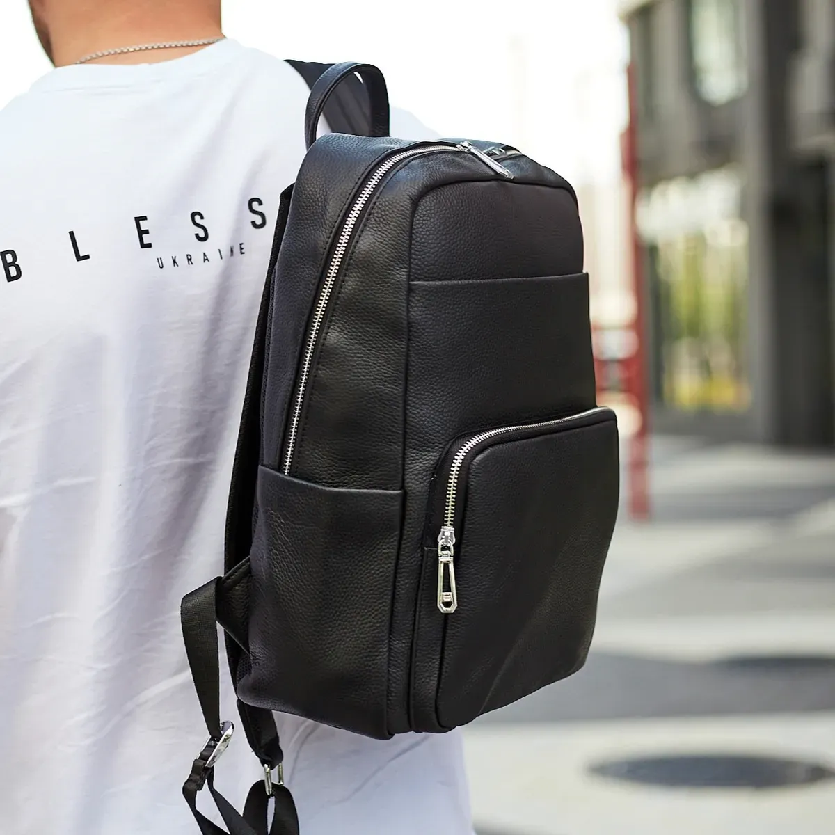 Стильний рюкзак з якісної натуральної шкіри. Дуже практичний і місткий. На лицьовій стороні розташовані функціональні кишені. Велике основне відділення. Якісна фурнітура. Модель відмінно підійде для стильних сучасних чоловіків. Підійде під ноутбук 15'