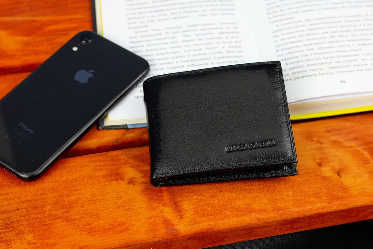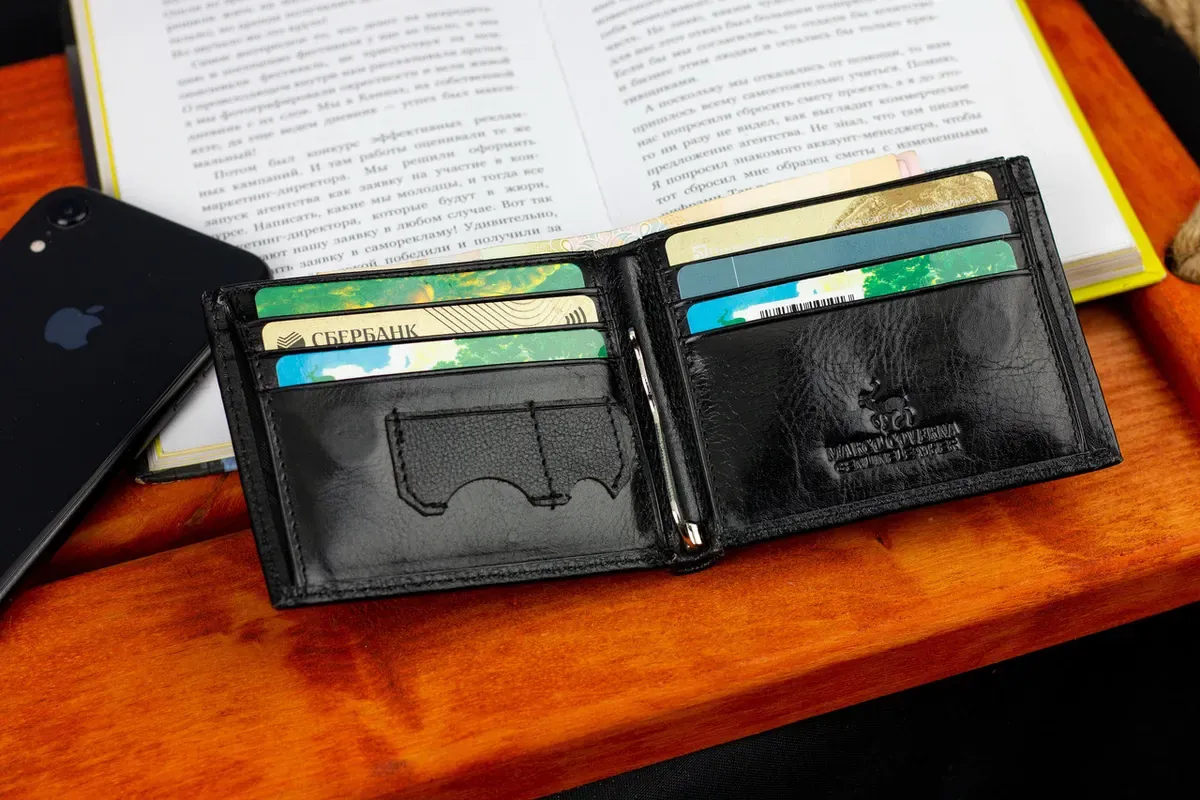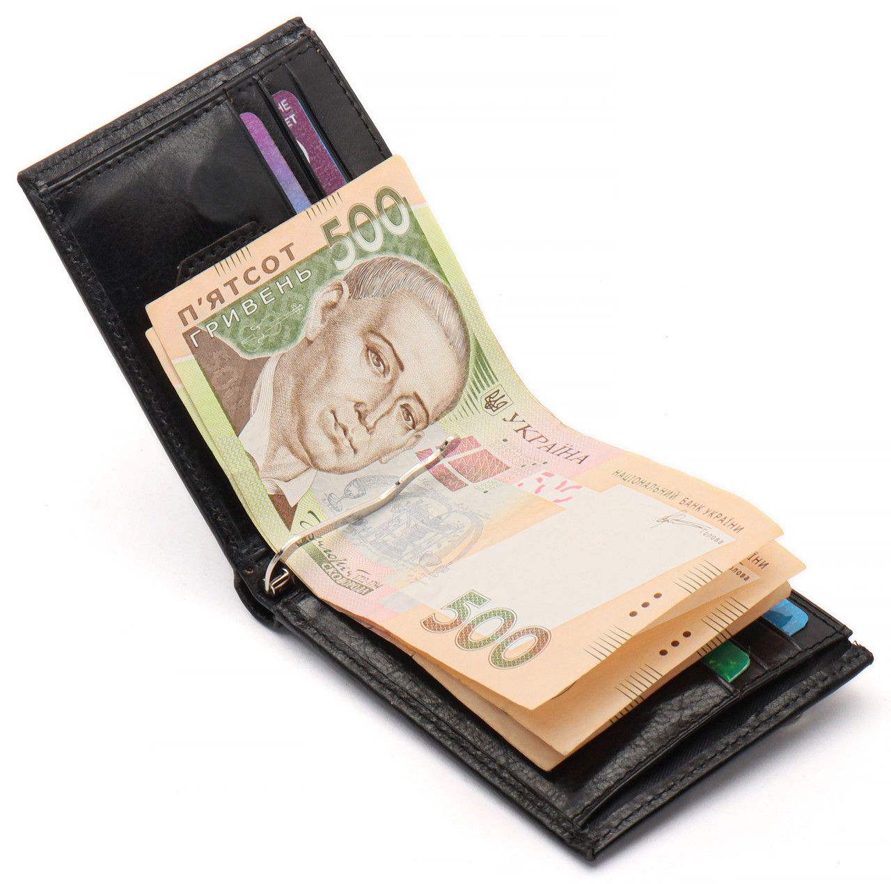 Чорне чоловіче портмоне з натуральної шкіри на магніті з затискачем Marco Coverna MC-030AH-1
