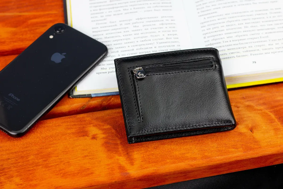 Чоловіче портмоне прослужить не один рік, тому що виконане з якісної шкіри. Виріб має 2 великі відділення для банкнот, одне закривається на блискавку. Три прилеглі кишені призначені для зберігання або грошей, або записів. У цьому чоловічому портмоне передбачено знімний металевий затискач, що дозволяє швидко діставати купюри. У зовнішній кишені з розширювачем зручно зберігати монети. Окремо знаходяться банківські картки та слоти для сім-карток, щоб усе було під рукою.