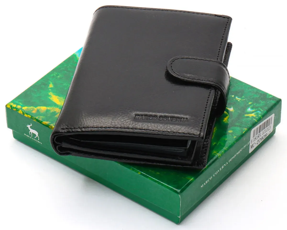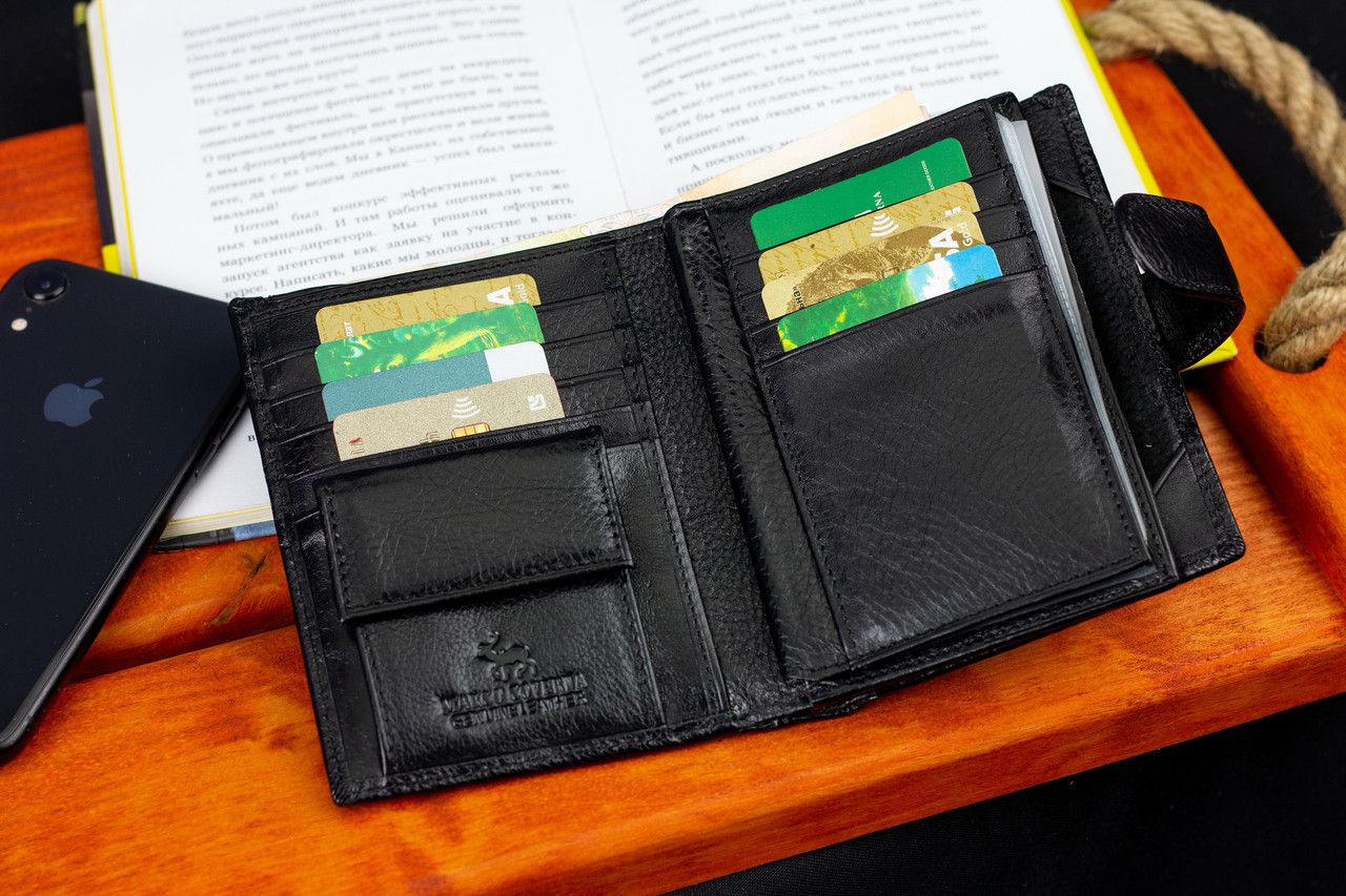 Чорне чоловіче портмоне з натуральної шкіри з відділенням під автодокументи Marco Coverna MC-2090H-1