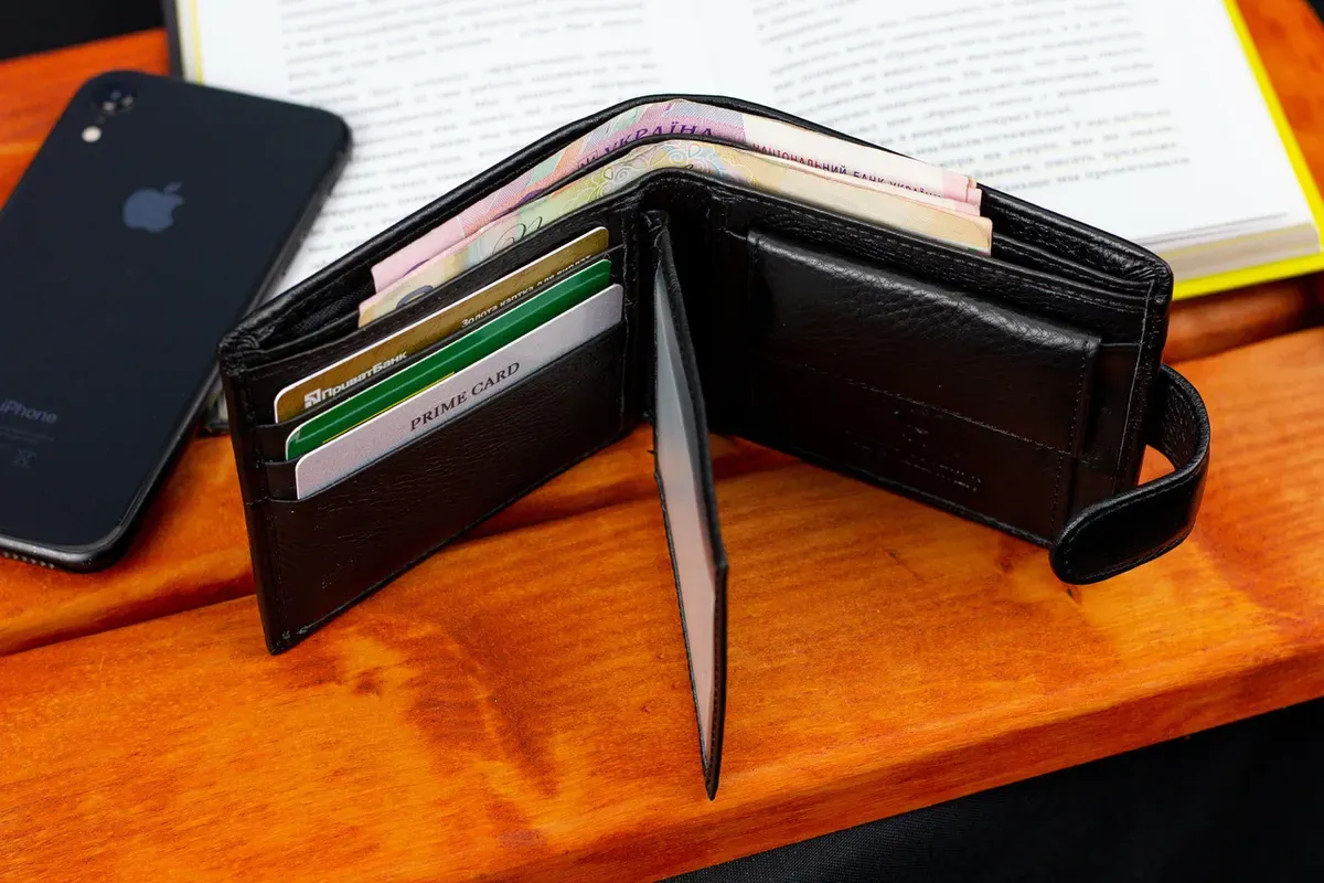 - (3) три відділення для купюр (одне на блискавці);