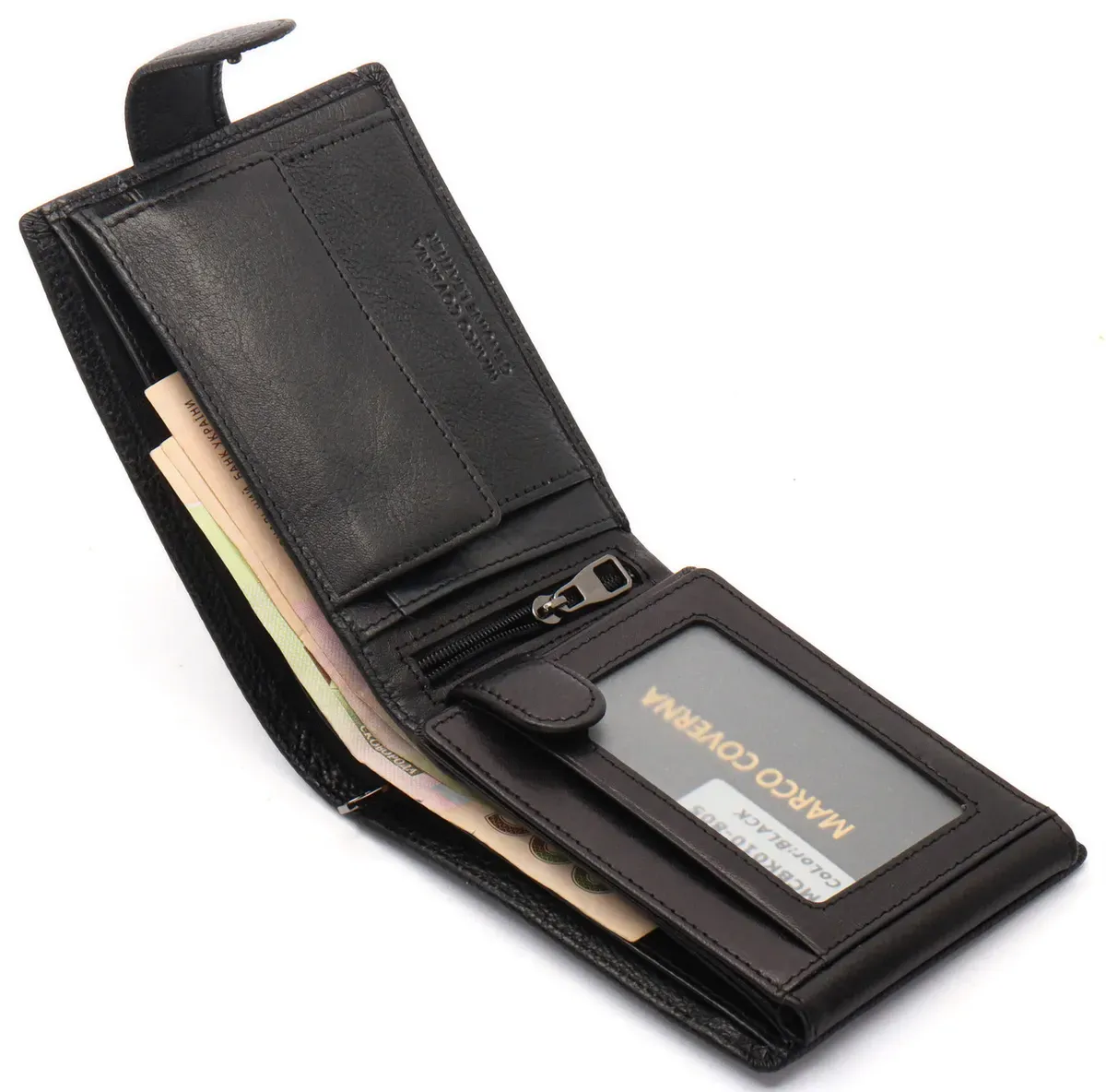 Чорне шкіряне портмоне з відділом для документів Marco Coverna MCBK10-805