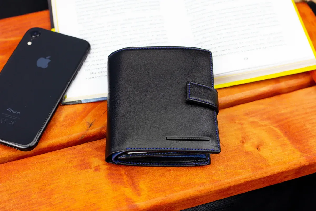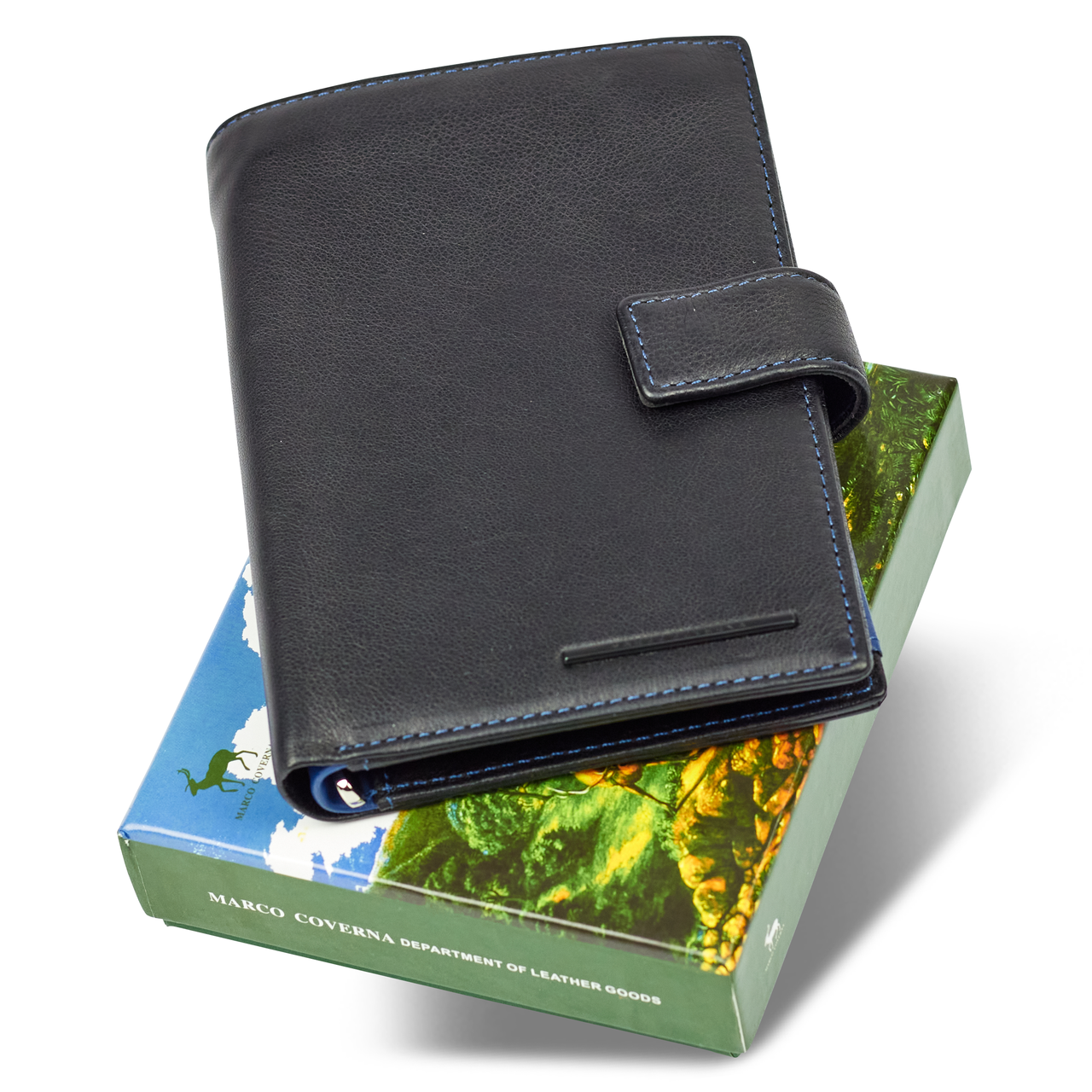 Чорний чоловічий гаманець з фіксацією з натуральної шкіри Marco Coverna MC-1005 A 1221