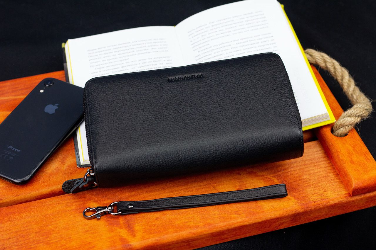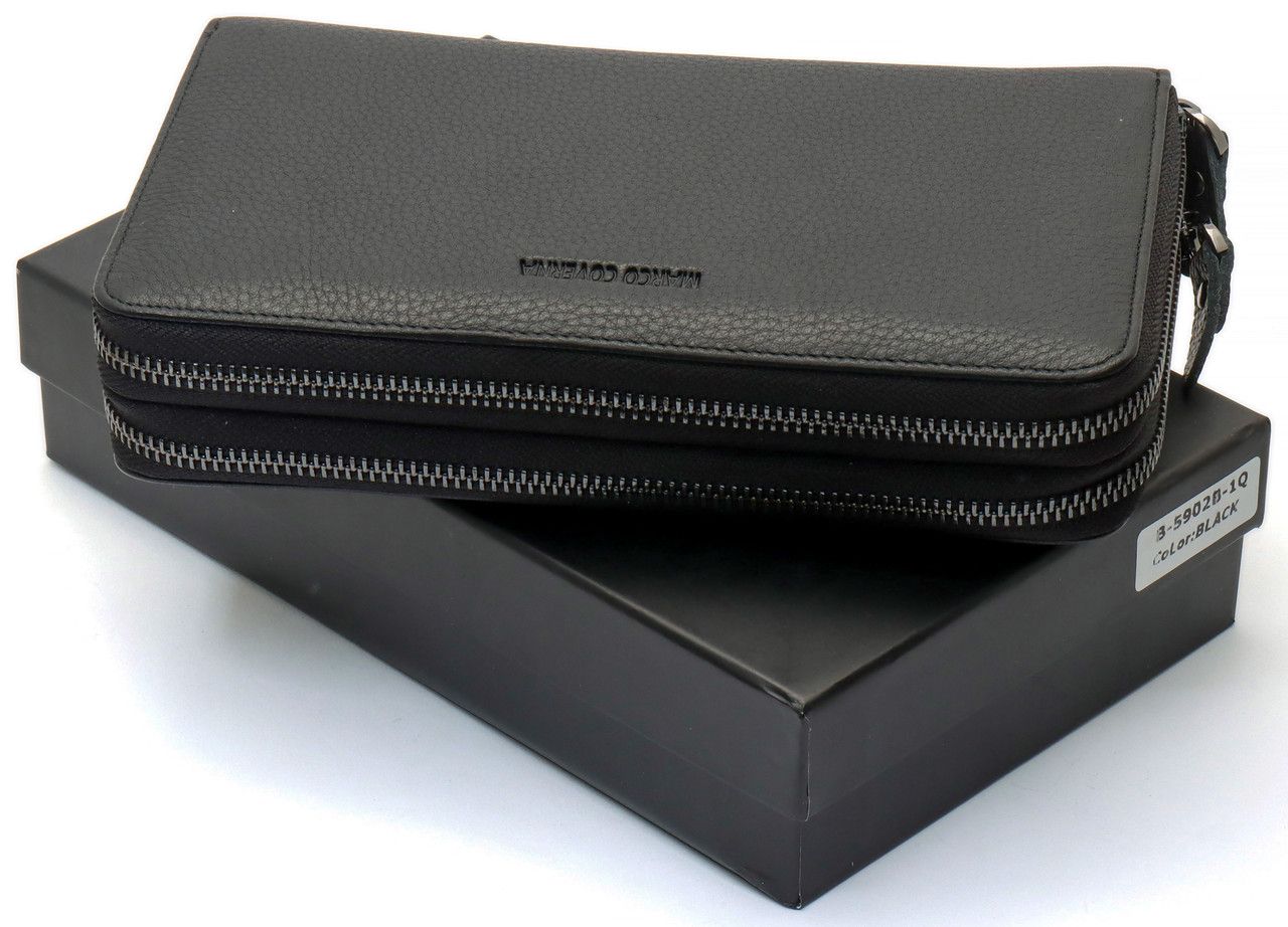 Чорний гаманець-клатч на дві блискавки з натуральної шкіри Marco Coverna B-5902B-1Q