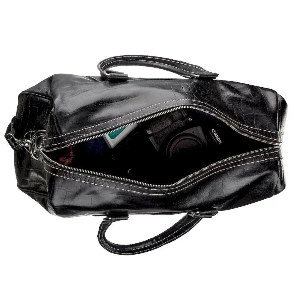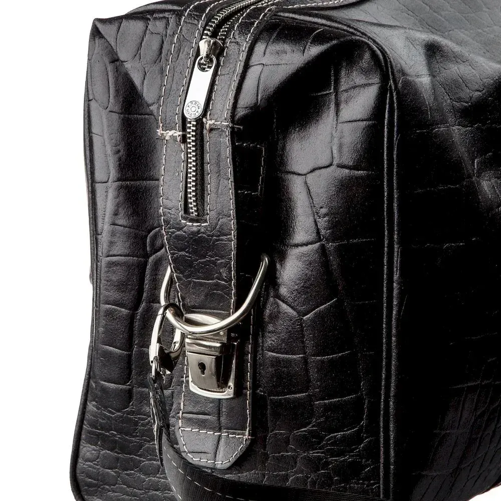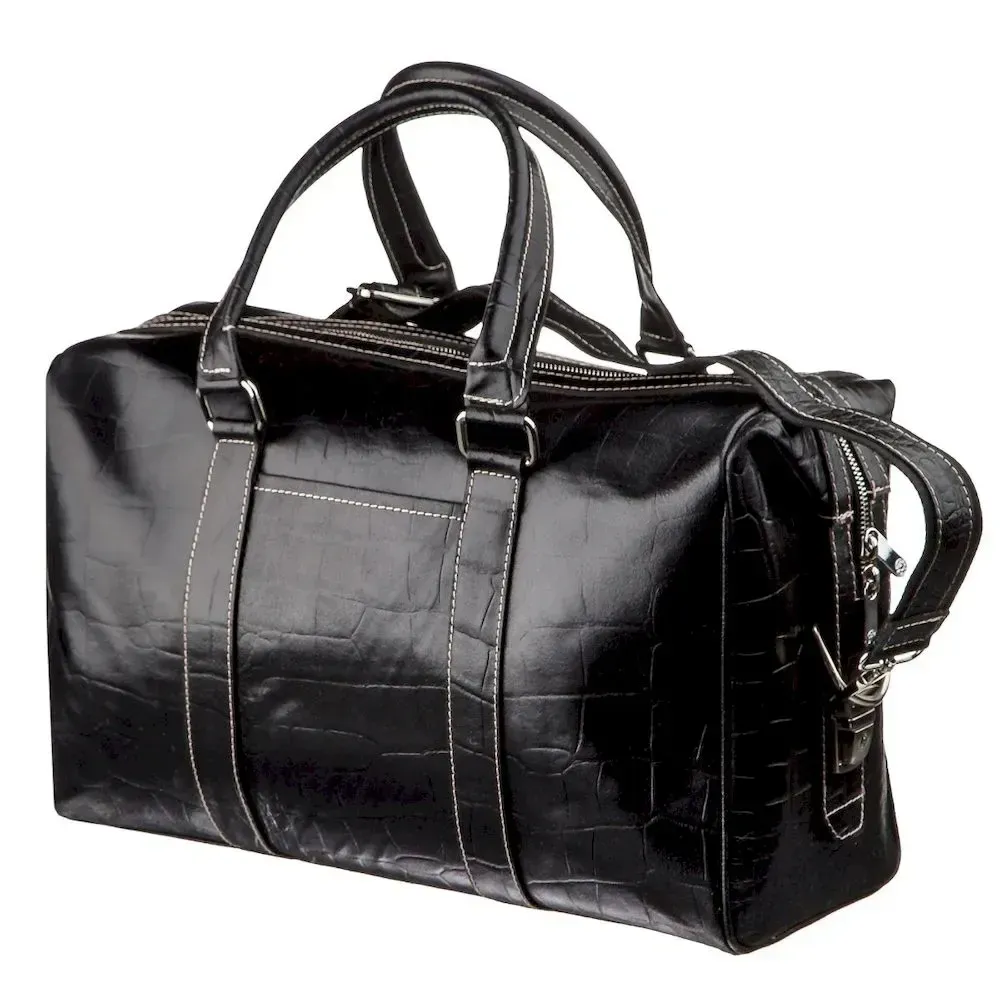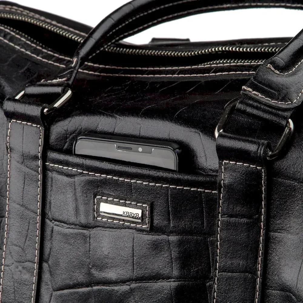 Ділова та добротна чоловіча шкіряна сумка найвищого якості. Модель із тисненням під шкіру крокодила. Аксесуар прошитий по краях світлою ниткою, закривається блискавкою на двох собачок. Ви можете носити аксесуар як в руках за допомогою шкіряних ручок, так і через плече за допомогою текстильної ручки з шкіряною вставкою. Виріб із щільної шкіри, яка практично не вбивається і не вимагає до себе особливого догляду. З такою сумкою вам буде зручно вирушити у довгострокове відрядження чи відпустку. Усередині – текстильна підкладка-хамелеон із бордовим відтінком. Виріб буде чудовим подарунком для будь-якого чоловіка. Ви можете не сумніватися у високій якості аксесуара, оскільки модель вироблена в Туреччині на фабриці, яка на ринку вже понад 20 років. Виріб упакований у пилозахисний чохол.