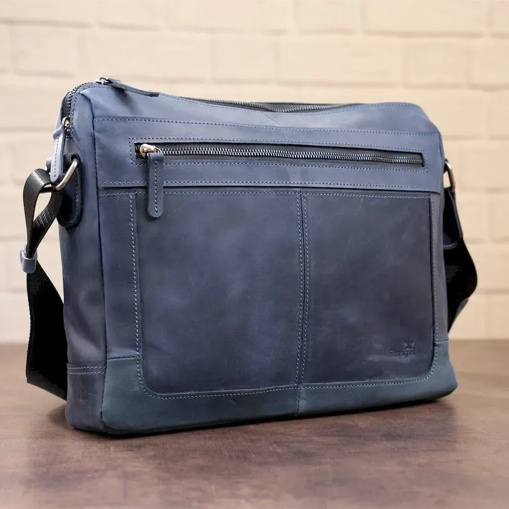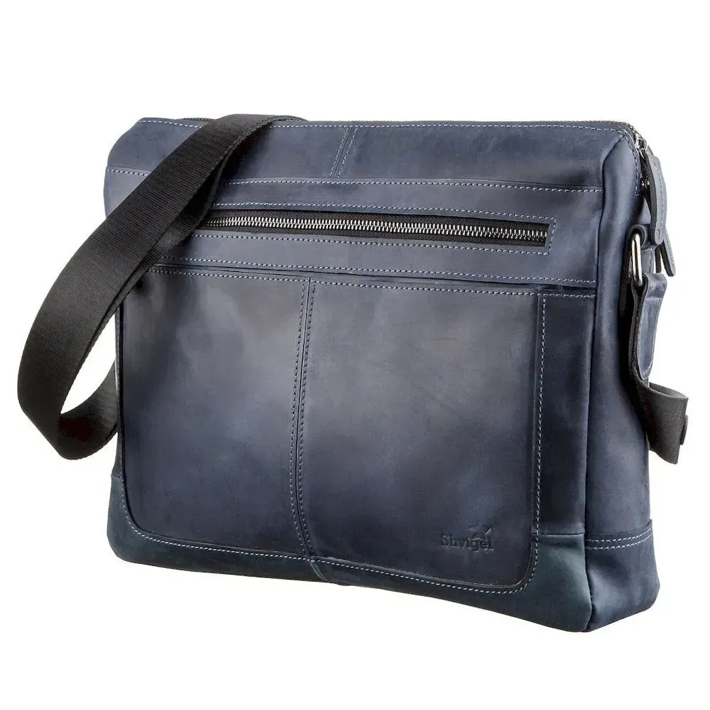 Ділова чоловіча шкіряна сумка на плече SHVIGEL 11249 Синя