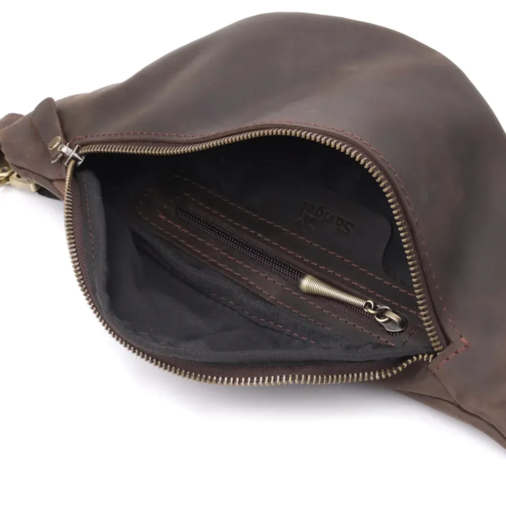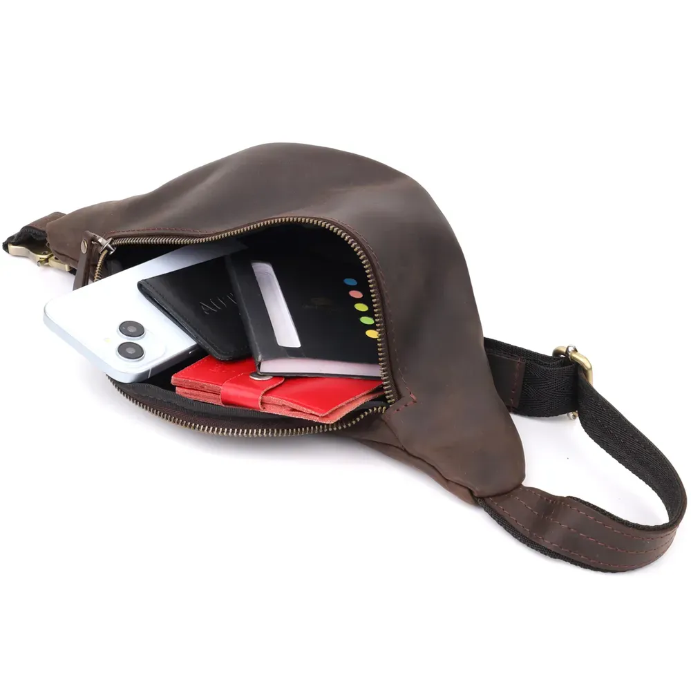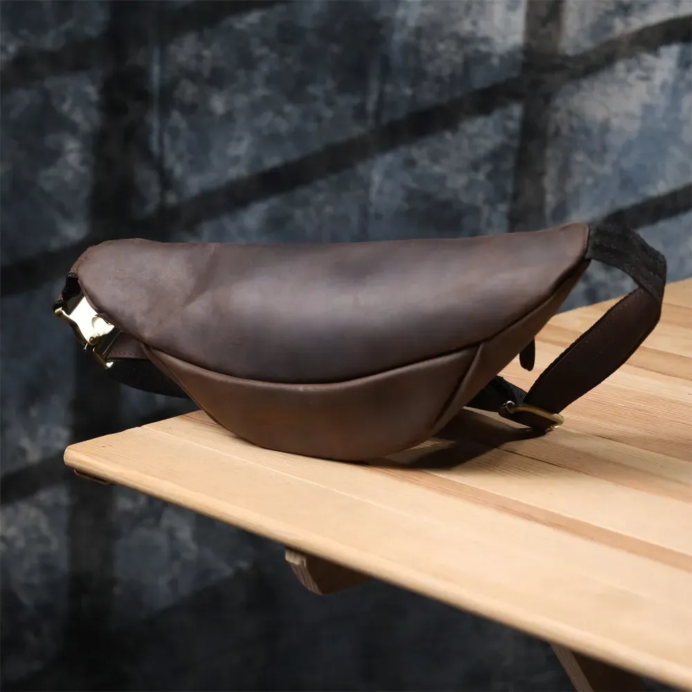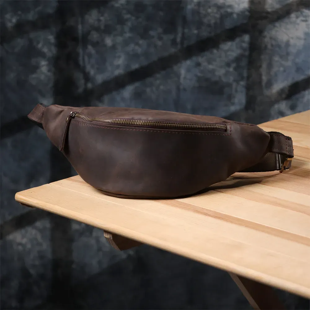 Добротна сумка бананка для чоловіків з натуральної шкіри вінтажної Shvigel 23139 Коричневий