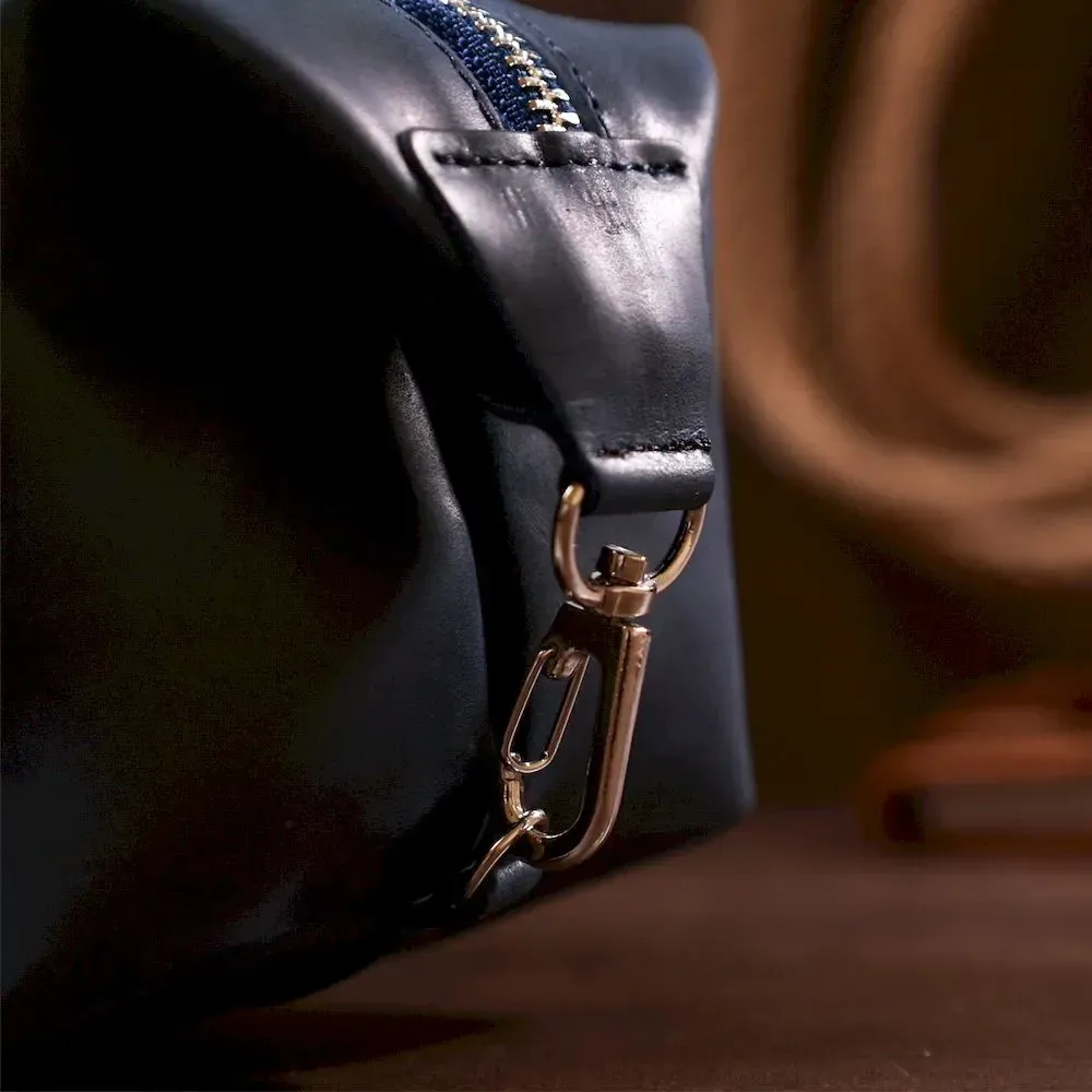 Чудова чоловіча косметичка для зберігання найціннішого і , яка легко поміститься в сумку або валізу. Виконана з натуральної високоміцної шкіри з покращеними показниками стійкості до зношування. Об'єм аксесуара може бути збільшений за допомогою карабінів з боків виробу. Колір цієї моделі – темно-синій, фактура – гладка і приємна на дотик.